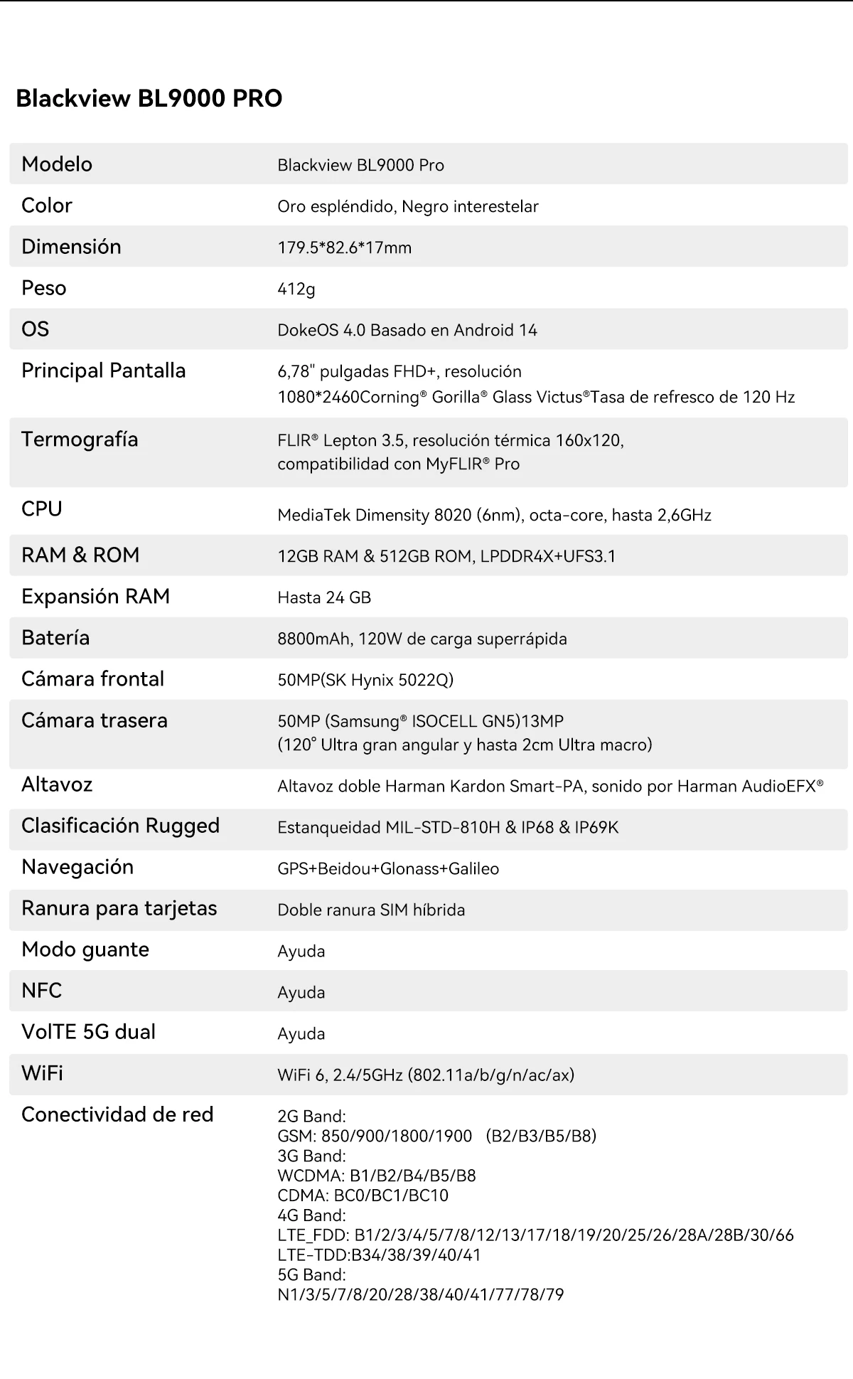 Comprar [Estreno mundial] Teléfono robusto Blackview BL9000 PRO 5G 6,78'' 24GB 512GB Imagen infrarroja FLIR ® 8800mAh Android 14 Smartphone NFC
