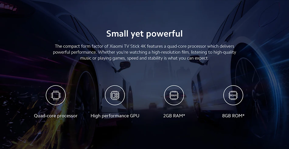El factor de forma compacto del Xiaomi TV Stick 4K cuenta con un procesador de cuatro núcleos que ofrece un rendimiento potente.Ya sea que esté viendo una película de alta resolución, escuchando música de alta calidad o jugando, la velocidad y la estabilidad es lo que puede esperar.