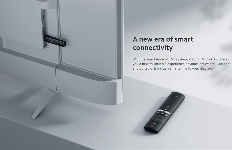 Con el televisor Android inteligente™ Sistema, Xiaomi TV Stick 4K te ofrece una nueva experiencia multimedia en cualquier momento y lugar.Compacto y portátil, brinda una vida más inteligente a sus pantallas*.