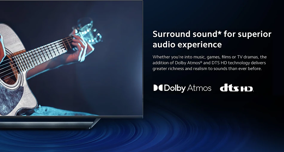 *Requiere contenido de transmisión de TV y video compatible con Dolby Atmos™ o decodificación DTS.