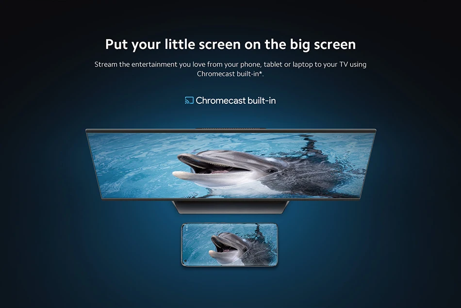 Transmita el entretenimiento que le guste desde su teléfono, tableta o computadora portátil a su televisor usando Chromecast integrado*.