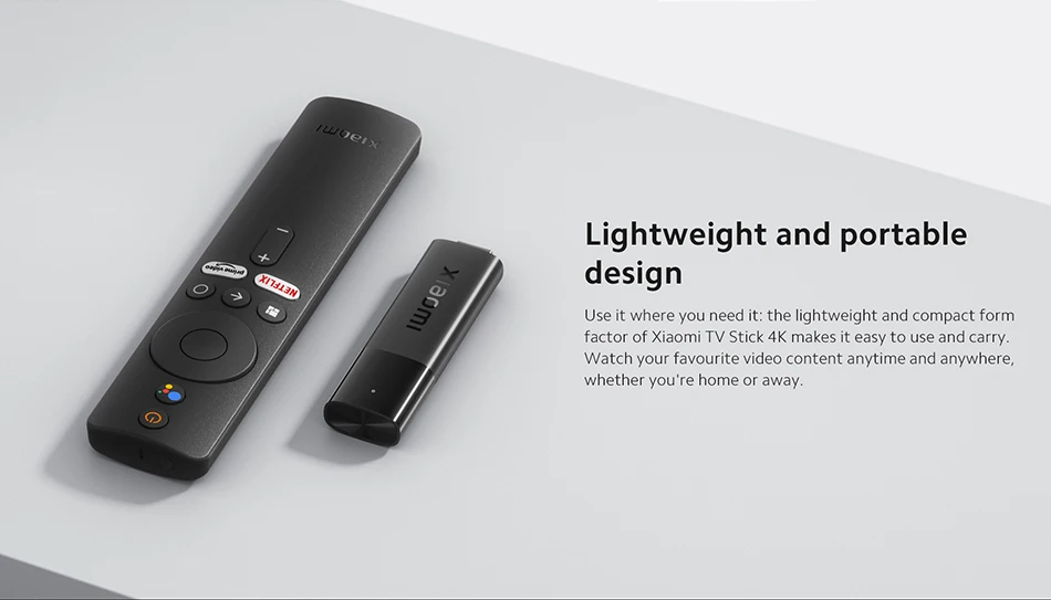 Úselo donde lo necesite: el factor de forma liviano y compacto de Xiaomi TV Stick 4K hace que sea fácil de usar y transportar.Mira tu contenido de vídeo favorito en cualquier momento y en cualquier lugar, ya sea en casa o fuera.