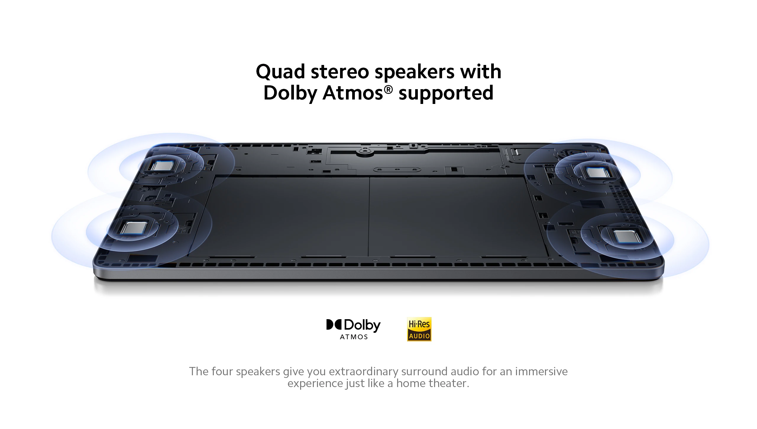 Altavoces cuádruples con Dolby Atmos®|Elegante diseño unibody de aleación de aluminio.