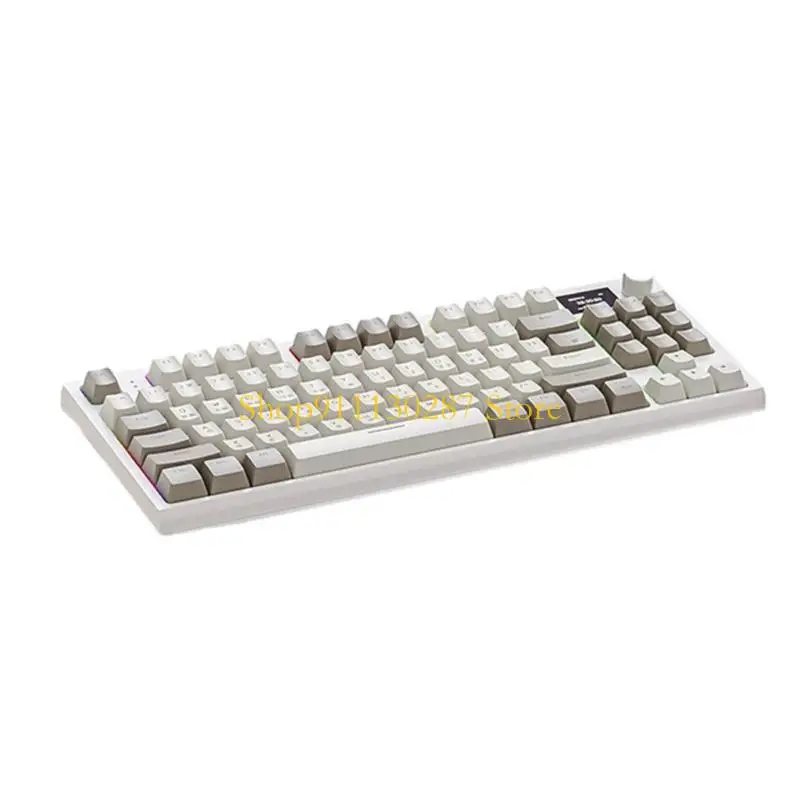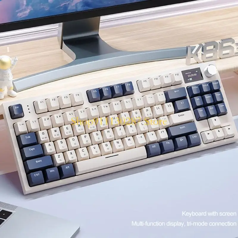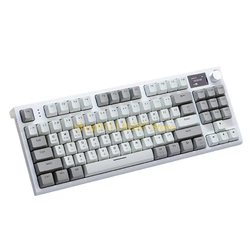 Características:OOTDTYLos interruptores de teclado coreano de tres modos K86RGB son un teclado mecánico que combina las características de un teclado normal con conectividad de tres modos y visualización inteligente en pantalla a color.