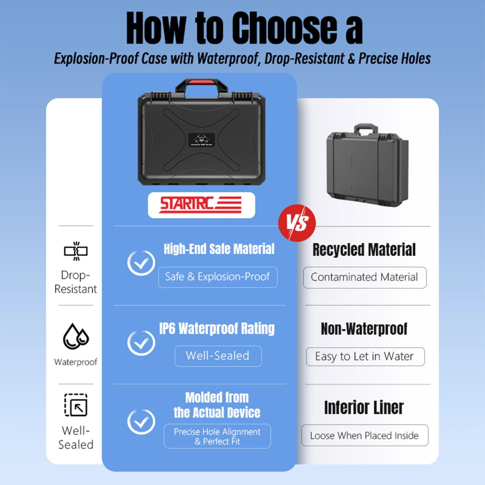 5.Convenient Portability: The portable waterproof hard case includes a latch design for effortless opening and closing, ergonomic carry handle, and reinforced shoulder strap, offering safe, comfortable outdoor or daily use for your entire drone kit.