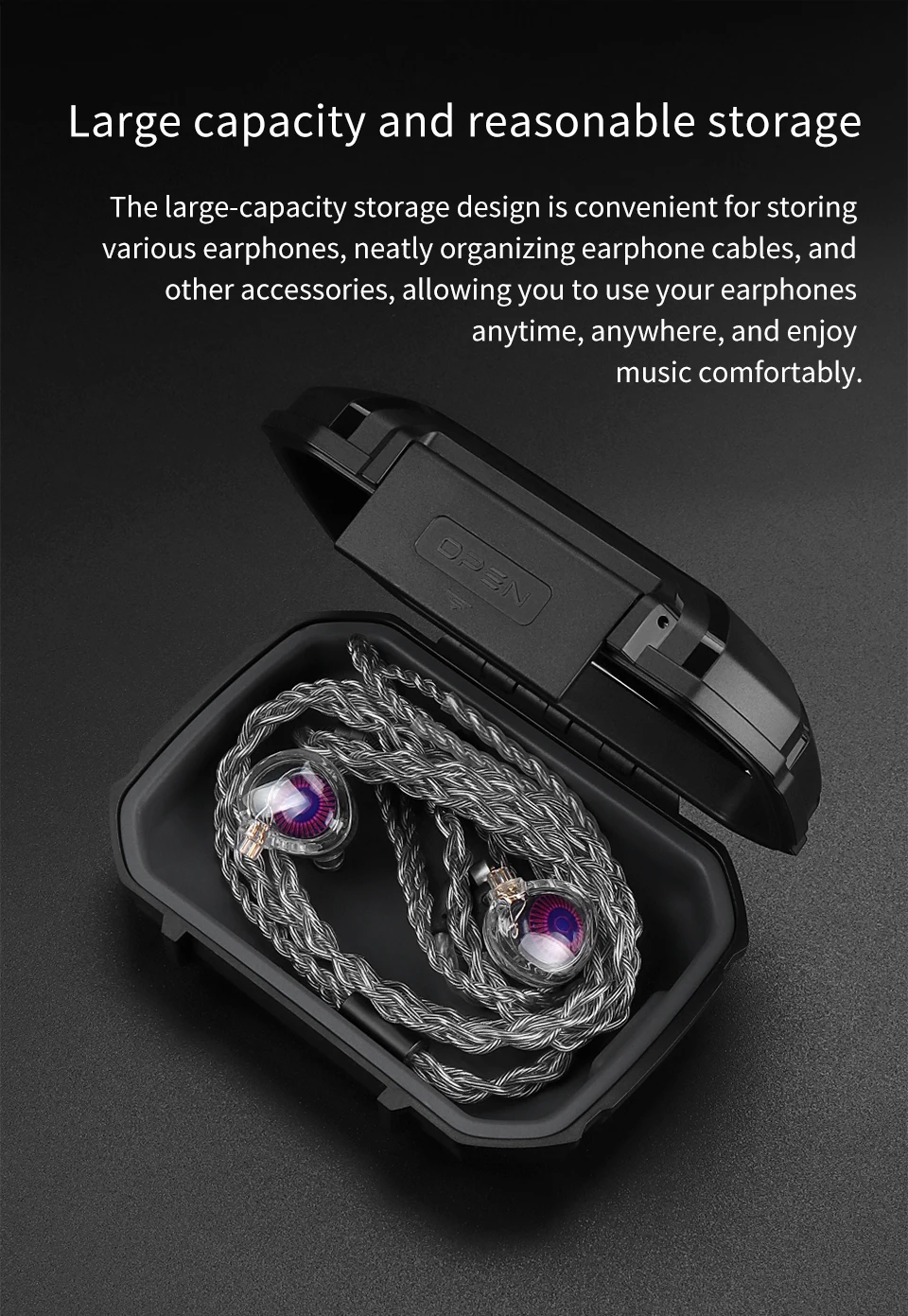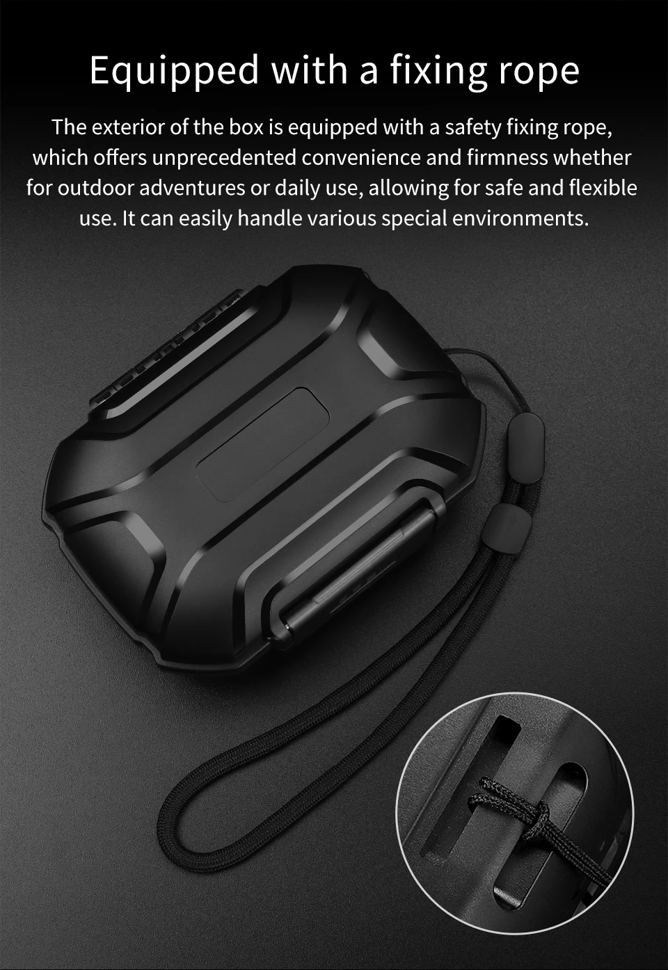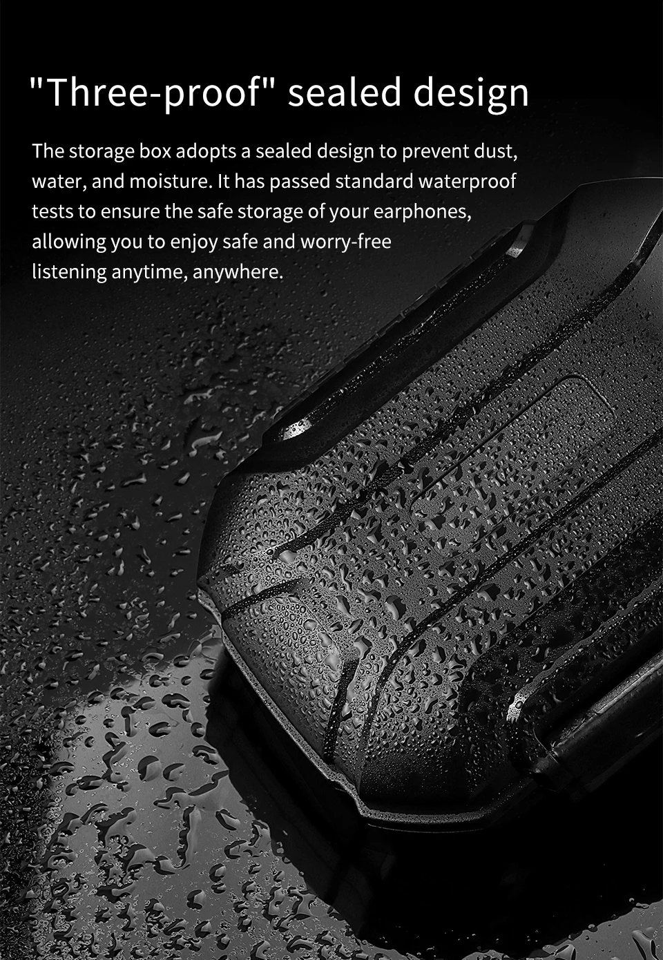 La caja de almacenamiento adopta un diseño sellado, que es a prueba de polvo, impermeable y a prueba de humedad. Ha pasado la prueba impermeable estándar para garantizar el almacenamiento seguro de los auriculares, lo que le permite escuchar de forma segura en cualquier momento y en cualquier lugar