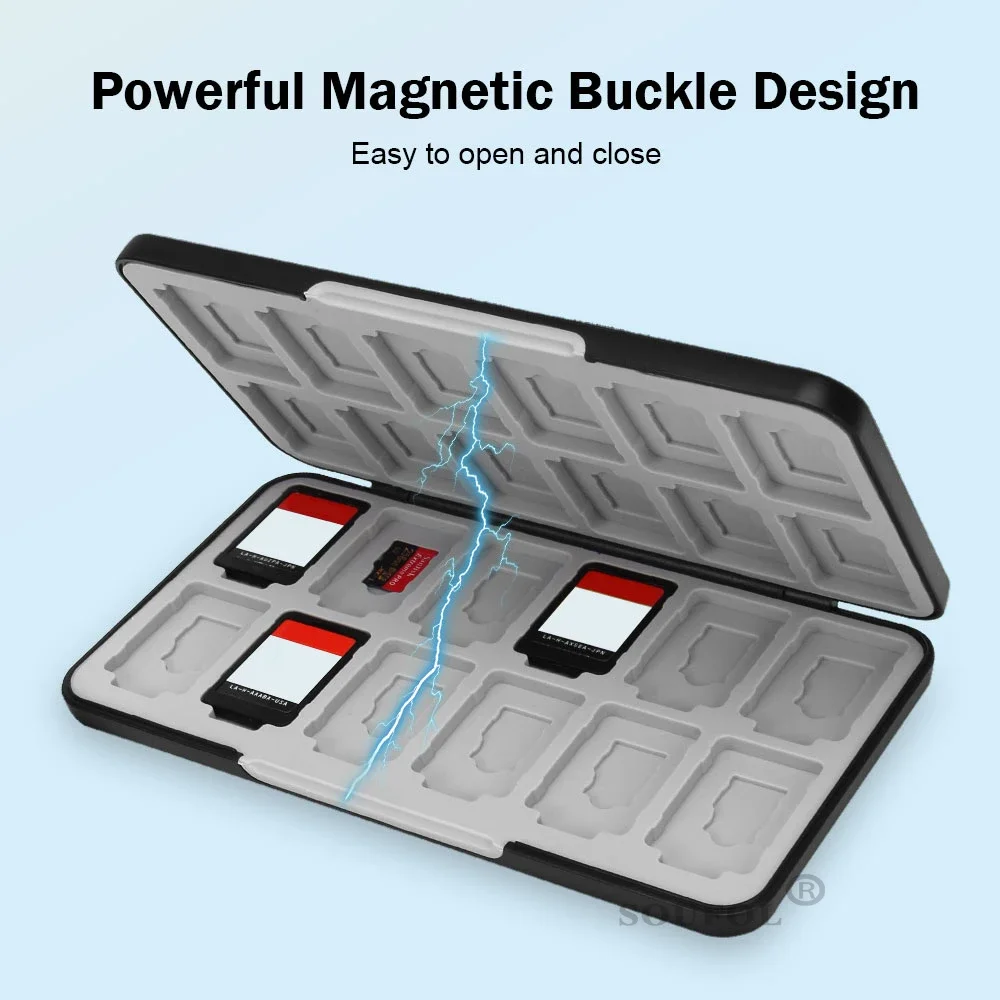 CaracterísticasGran capacidad:Este estuche para tarjetas protege y almacena hasta 24 tarjetas de juego Switch y 24 tarjetas microSD.