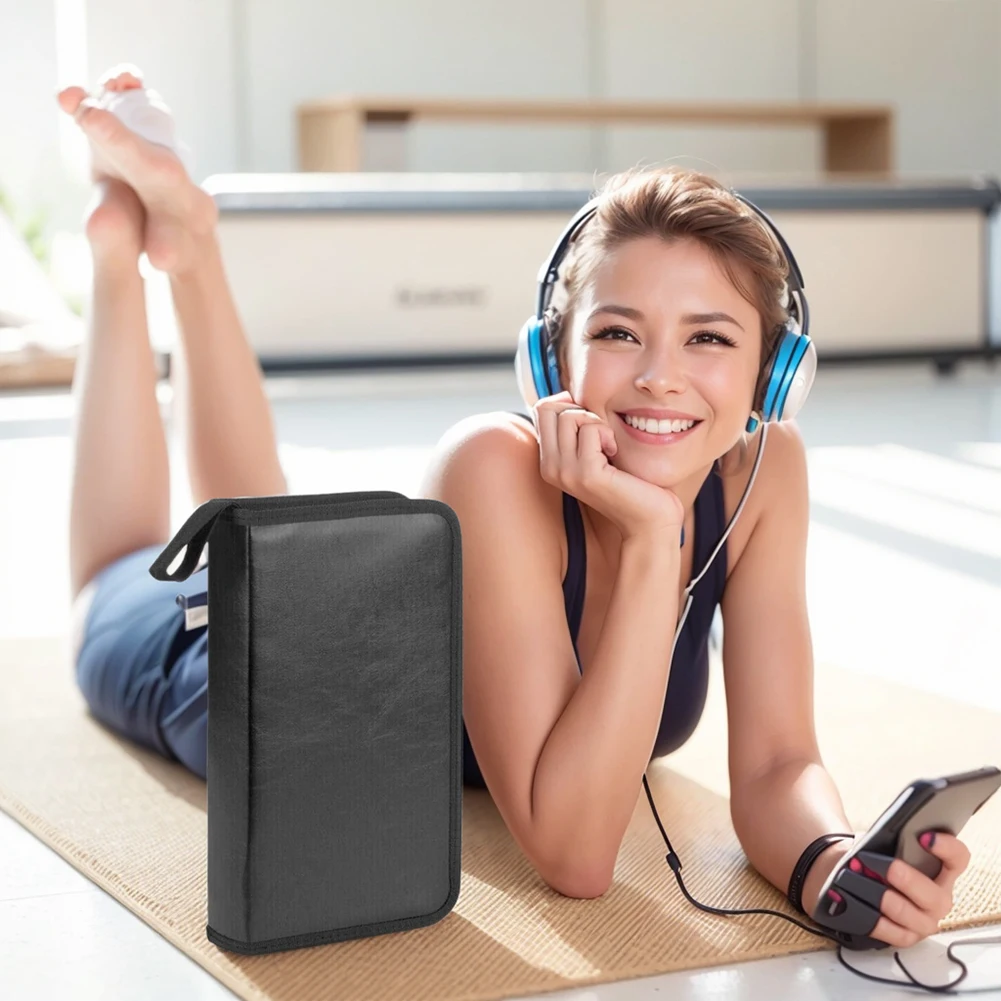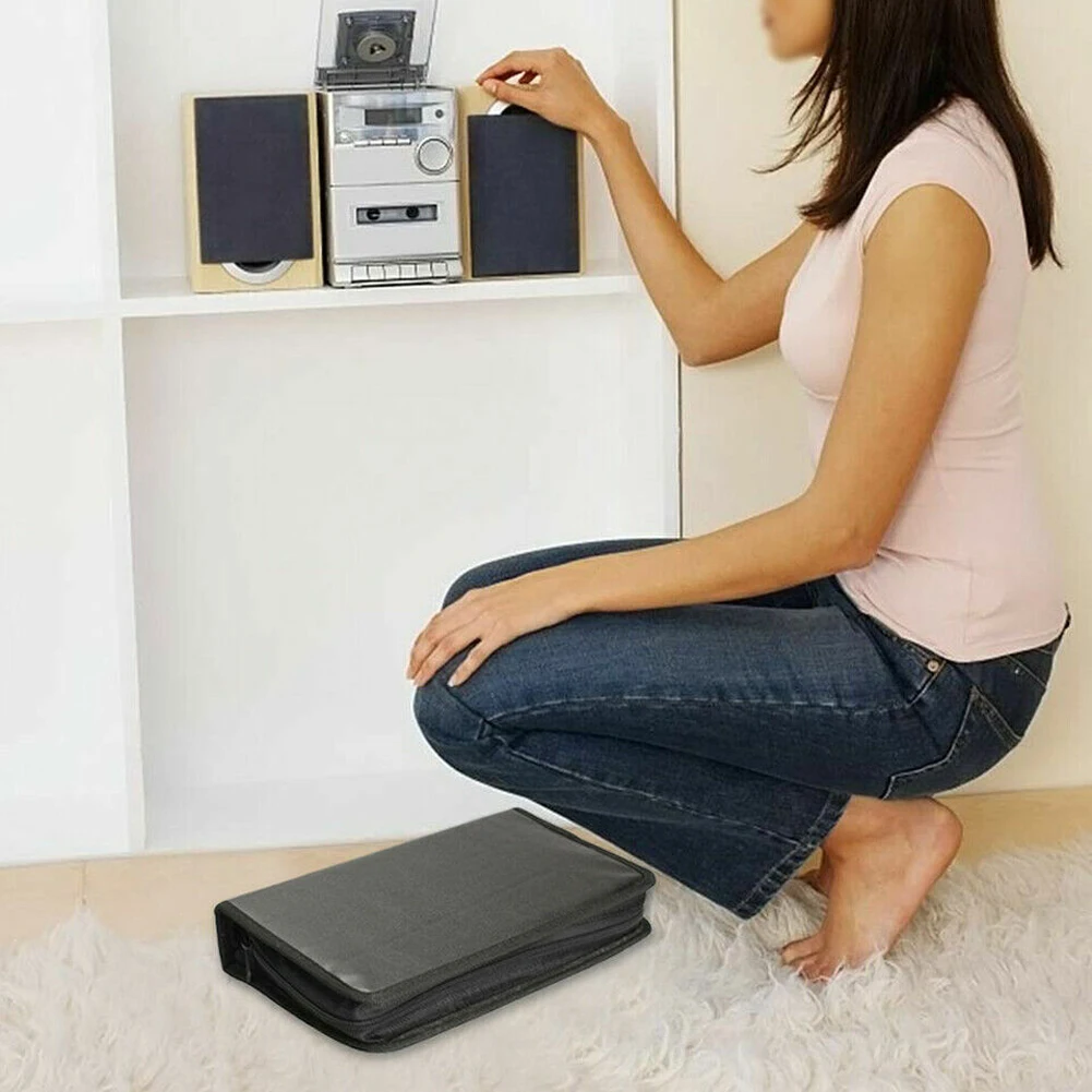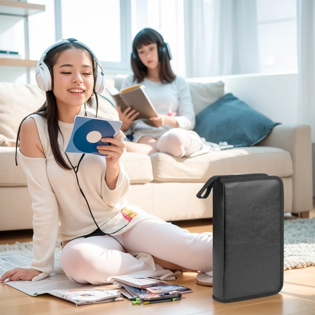 2.Portátil y ahorra espacio:Diseñado para ser portátil, el soporte portátil para CD DVD con cremallera permite un fácil transporte sin ocupar demasiado espacio.Esto lo convierte en una solución ideal para mantener sus discos organizados y accesibles, ya sea en casa o mientras viaja.