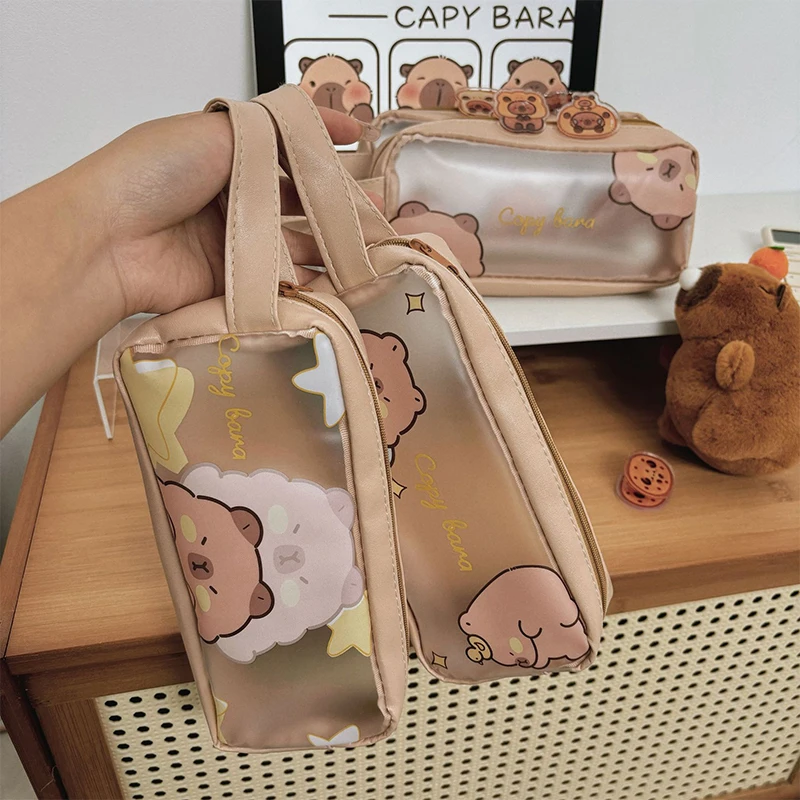 3. Large capacity: The Capybara portable pencil case has a large storage space, which can accommodate a large number of pens, stationery, cosmetics, and is very practical.