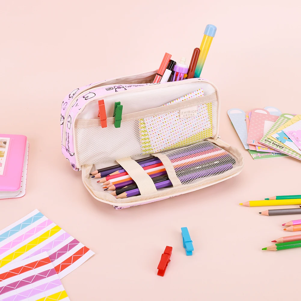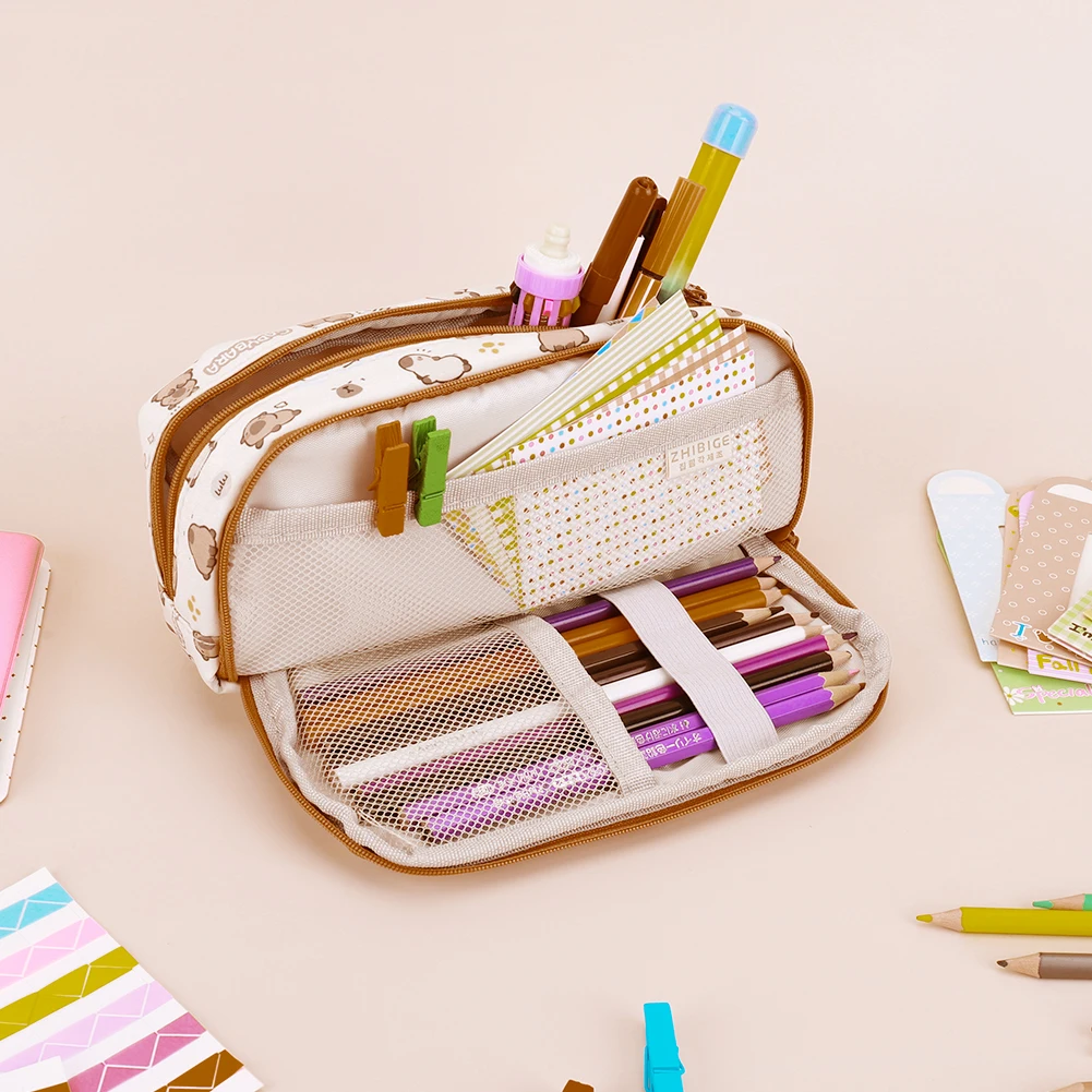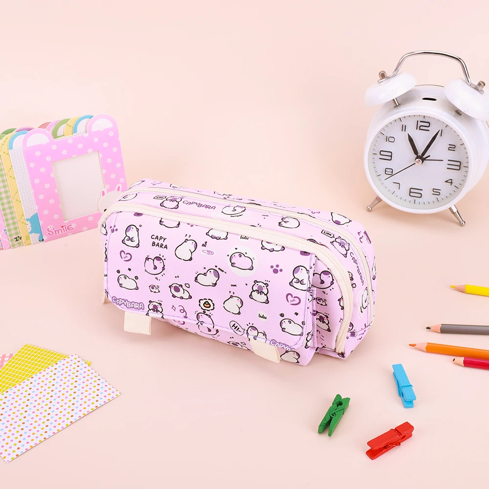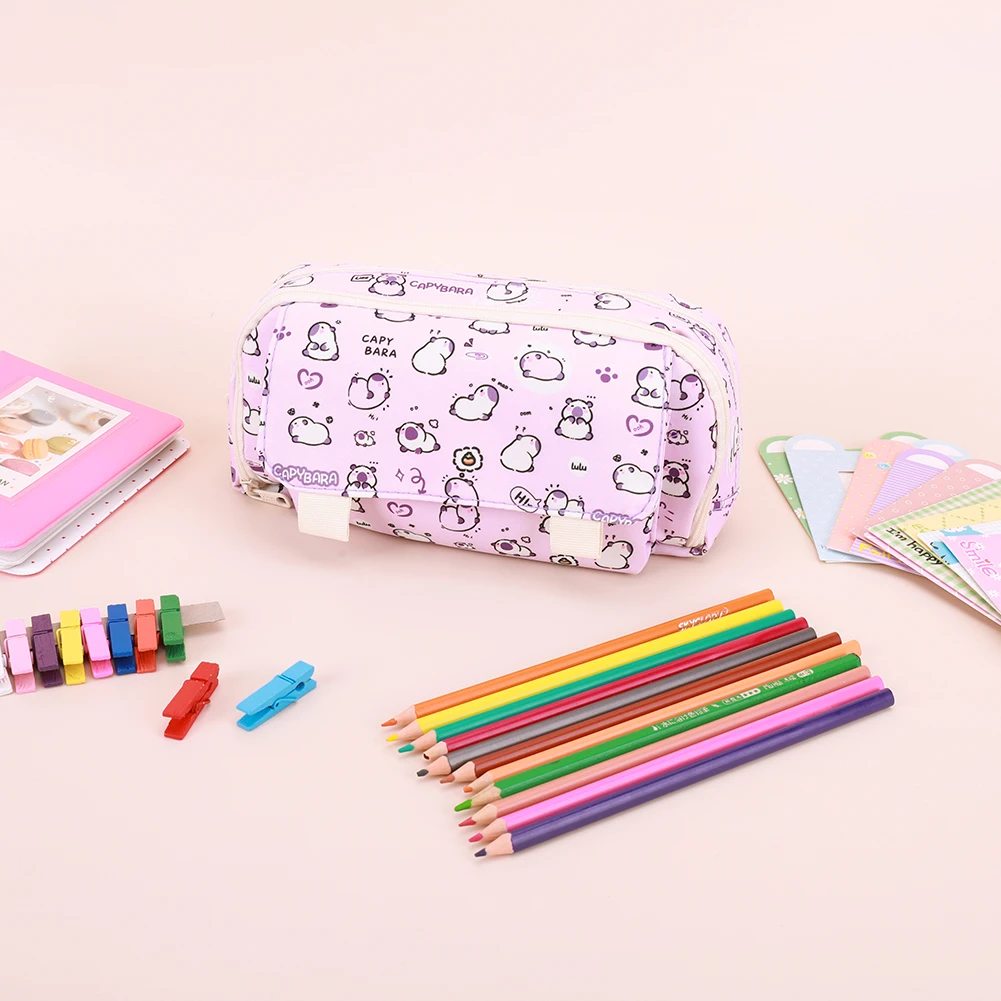 Comprar Estuche grande para lápices Capibala con cremallera para niñas, organizador de escritorio, bonito estuche para lápices Kawaii, bolsa para bolígrafos para suministros escolares y de oficina