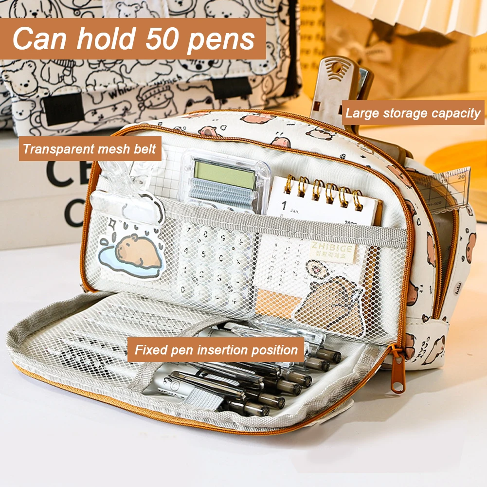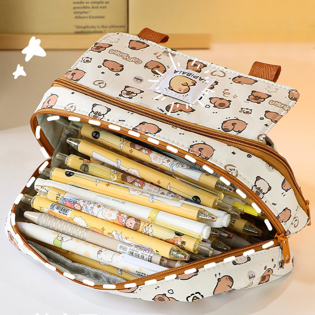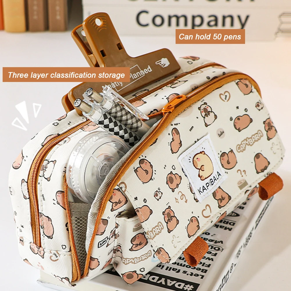 CapibalaEstuche grande para lápices con cremallera, bonita caja de lápices Kawaii para niñas, bolsa de papelería portátil, bolsa para bolígrafos, suministros escolares y de oficina