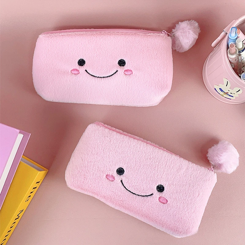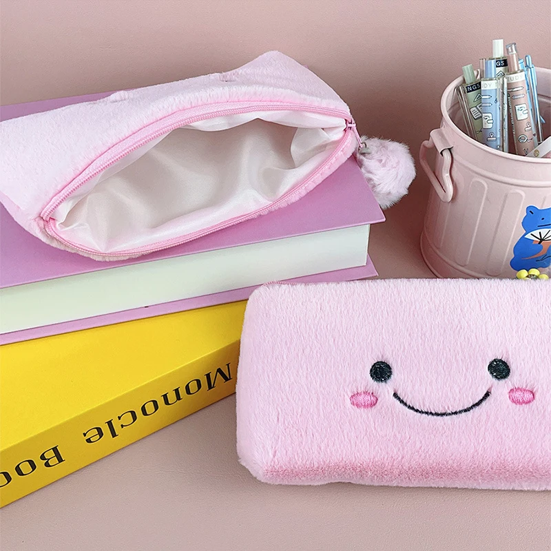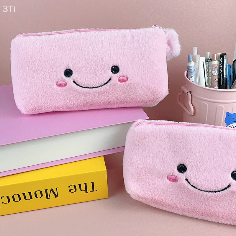 Comprar Estuche para lápices de felpa con sonrisa de dibujos animados, bolsas para lápices simples a la moda, bolsa de almacenamiento de papelería Kawaii, estuche para lápices de gran capacidad, regalos