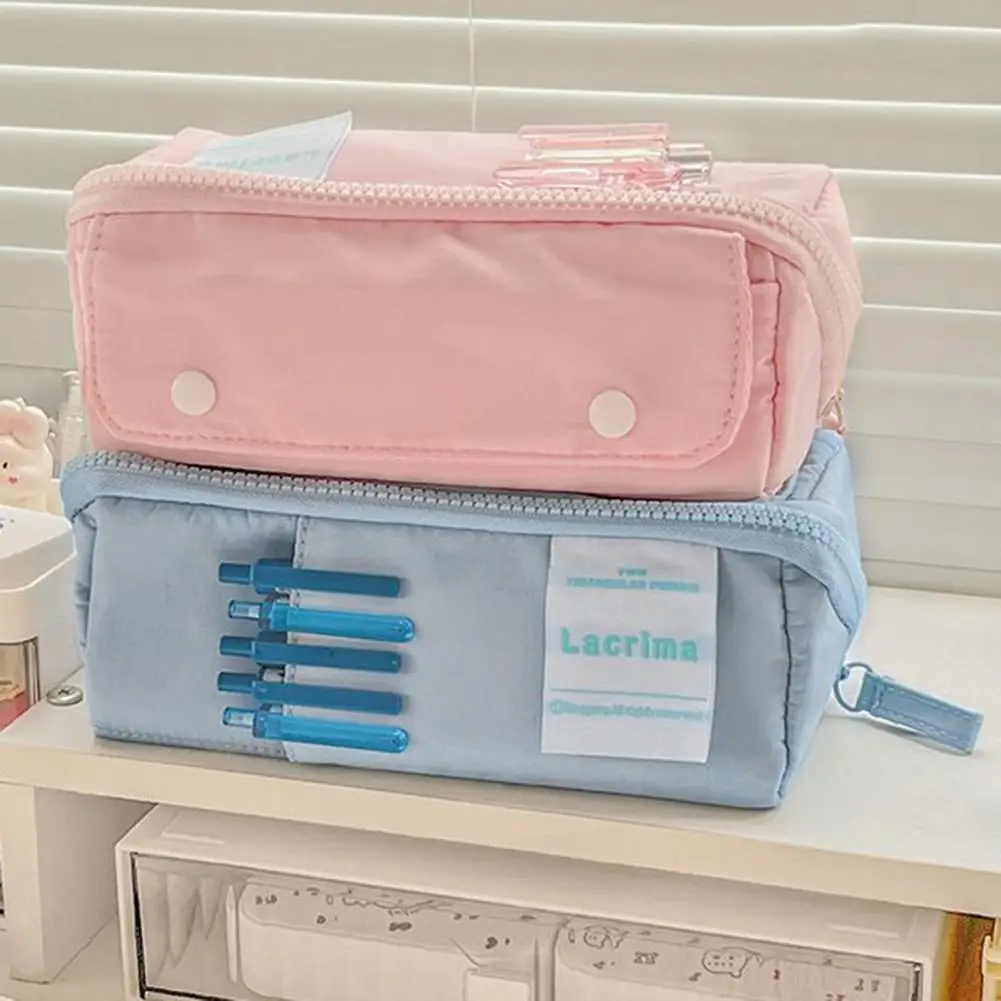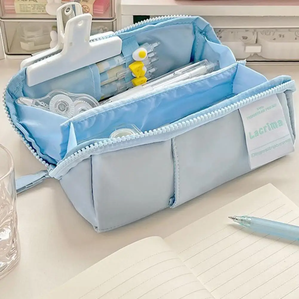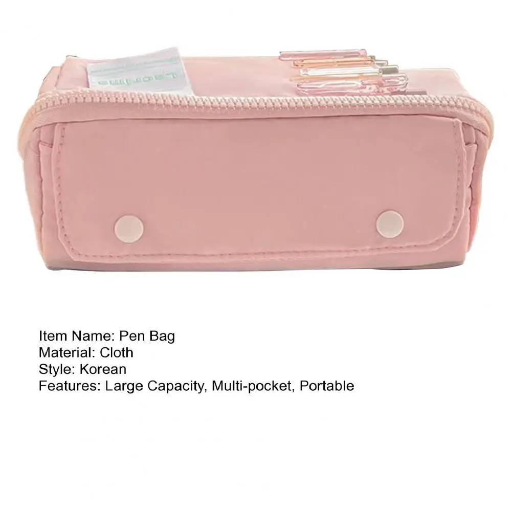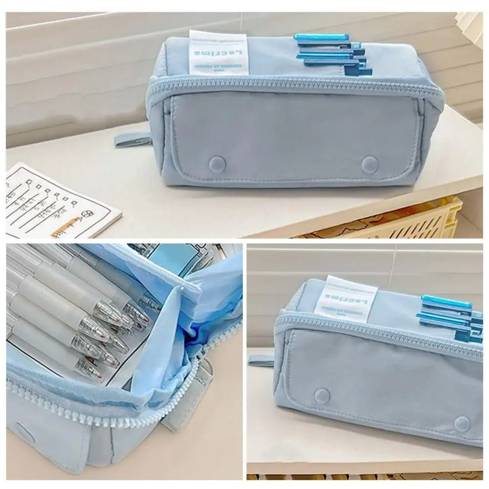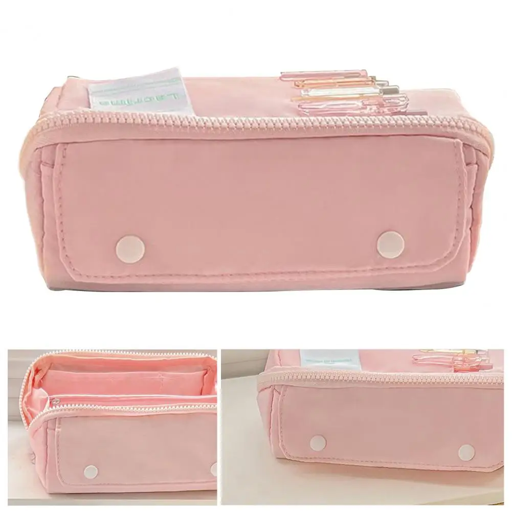 Bolsa para bolígrafos de gran capacidad, multibolsillo, portátil, con cremallera, a prueba de polvo, Color sólido, para niñas, estudiantes, lápiz, papelería, funda, suministros escolares