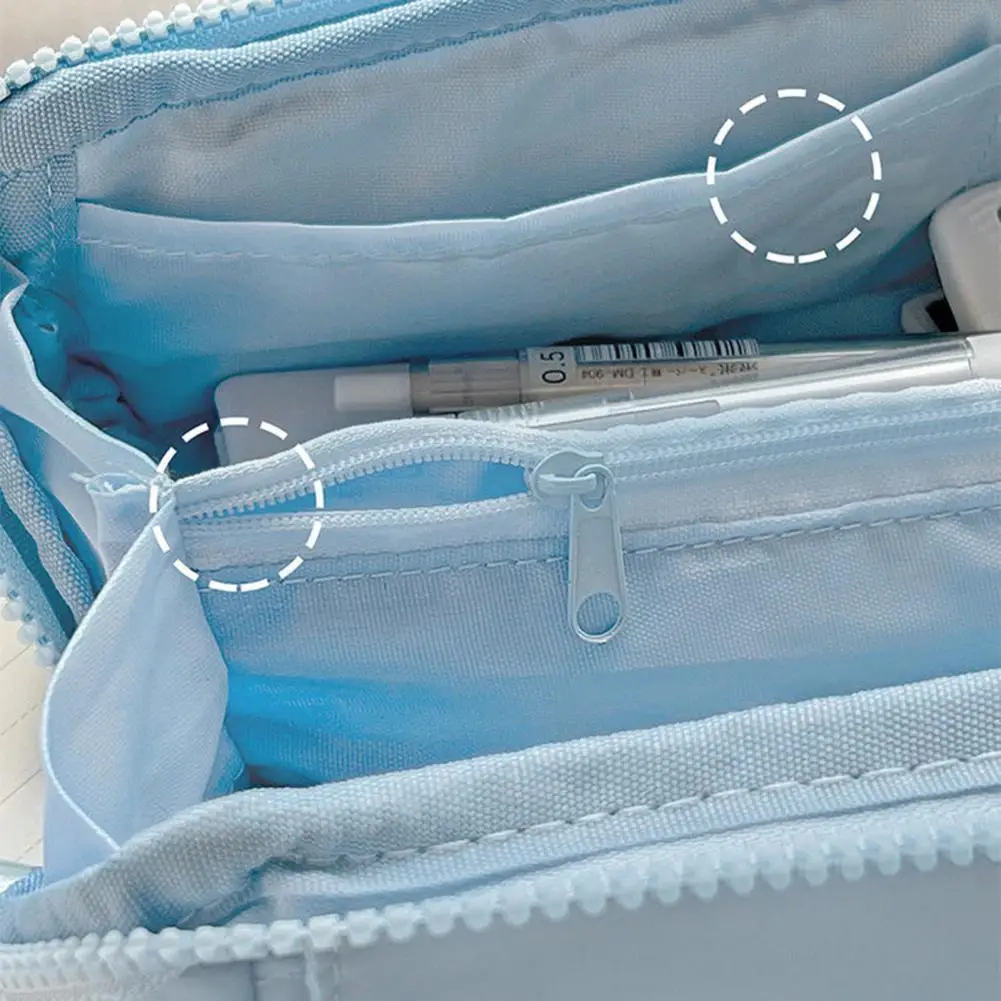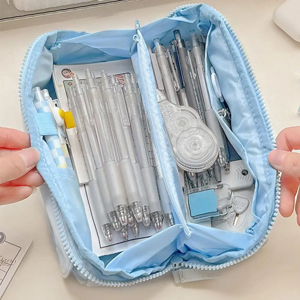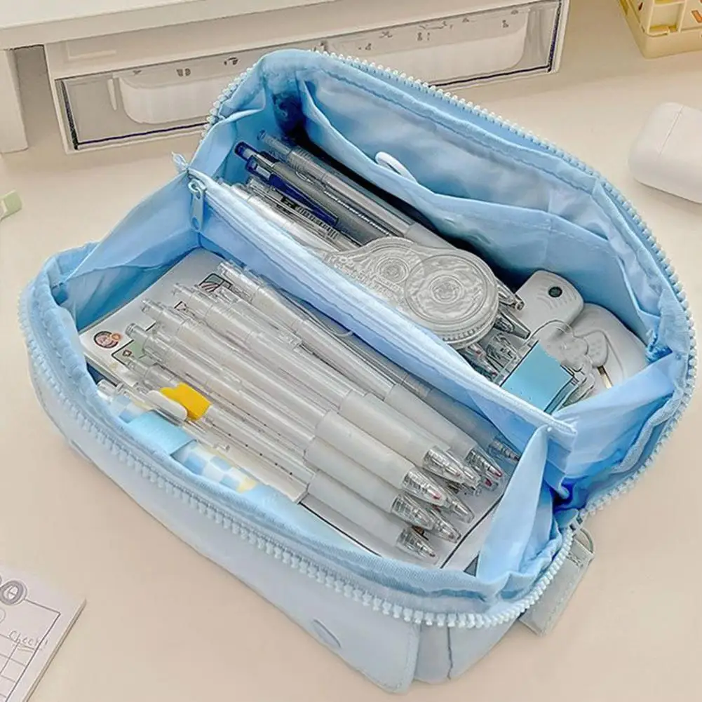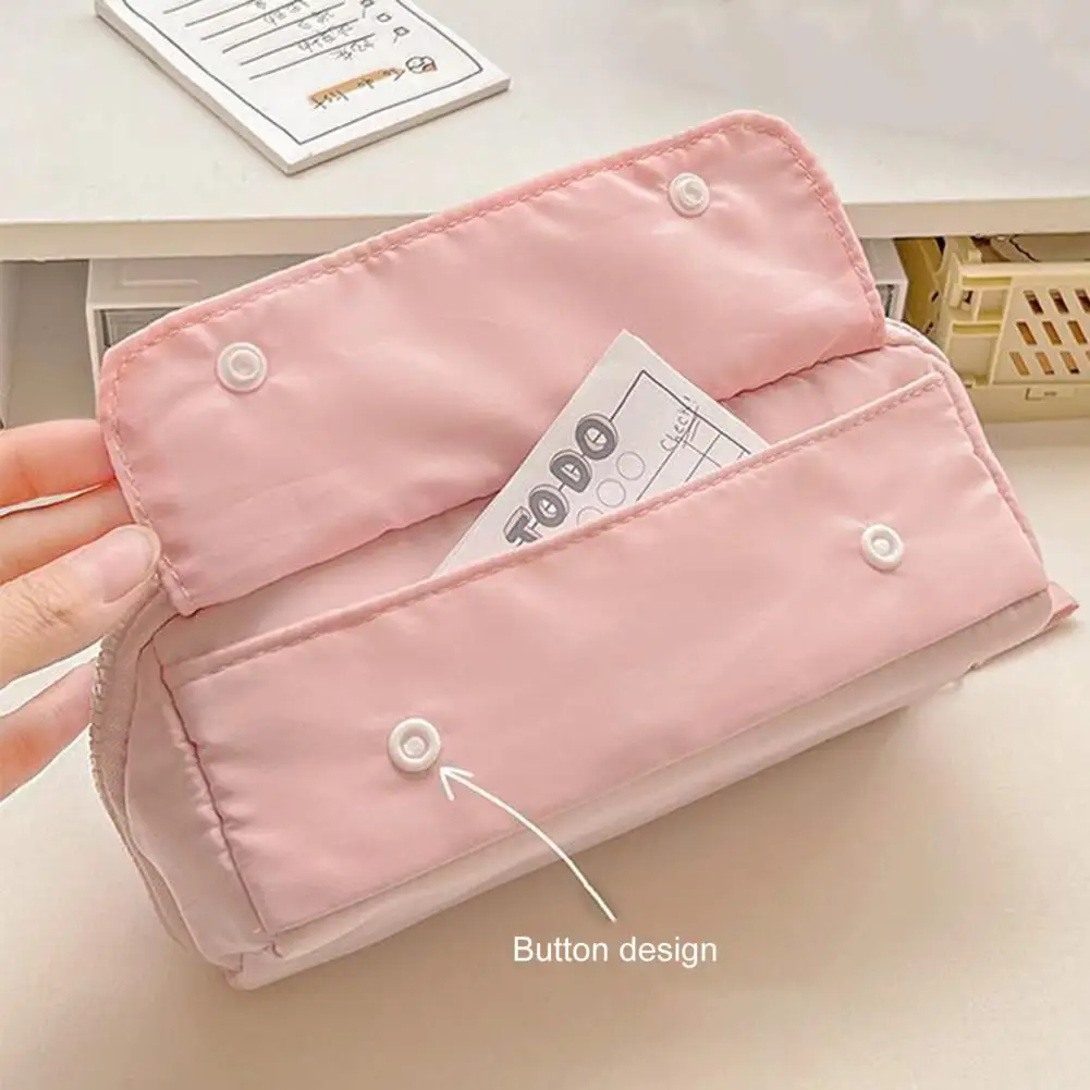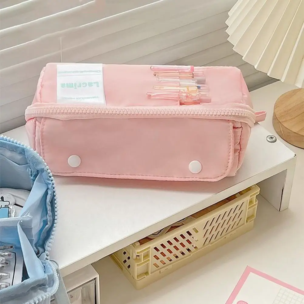 Bolsa para bolígrafos de gran capacidad, multibolsillo, portátil, con cremallera, a prueba de polvo, Color sólido, para niñas, estudiantes, lápiz, papelería, funda, suministros escolares
