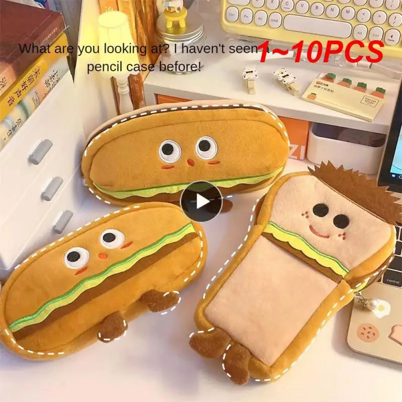 Estuche de lápices de 1 ~ 10, gran capacidad, encantador, práctico, cómodo, para oficina, caja de lápices, tostadas, estilo, cremallera suave