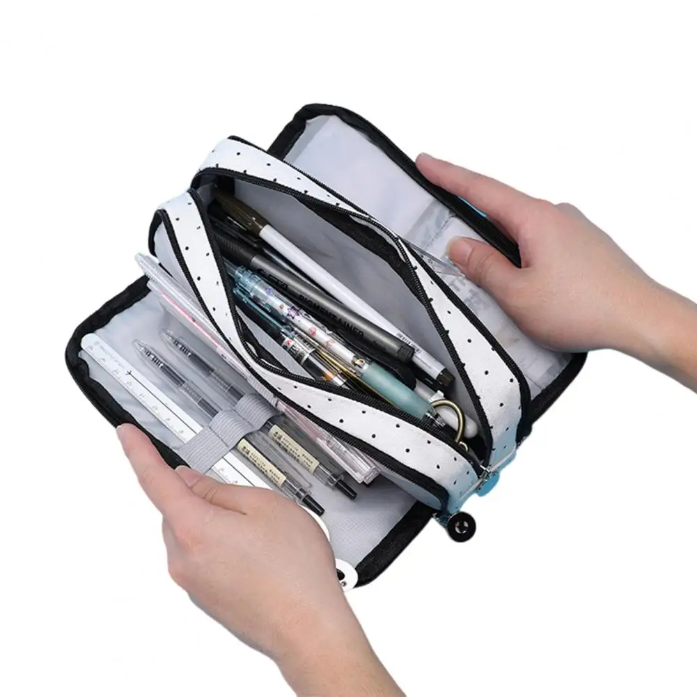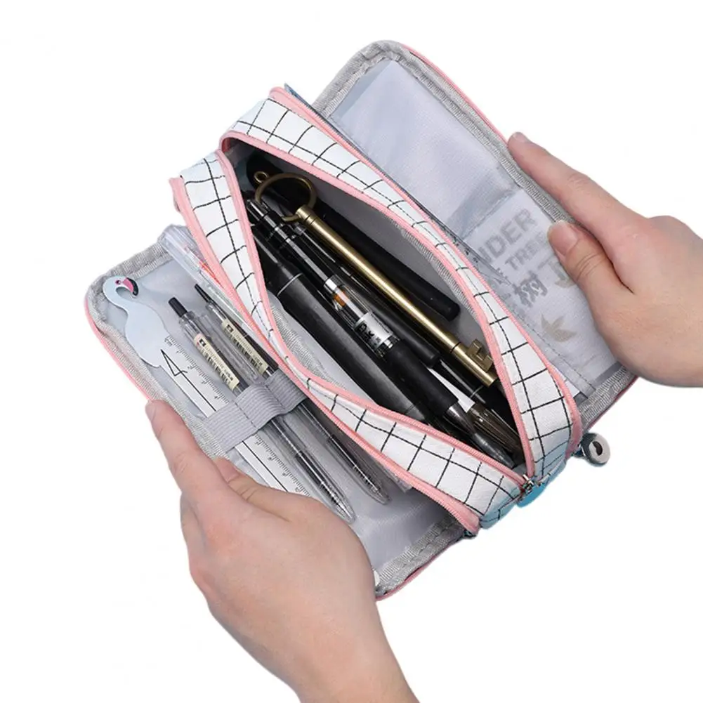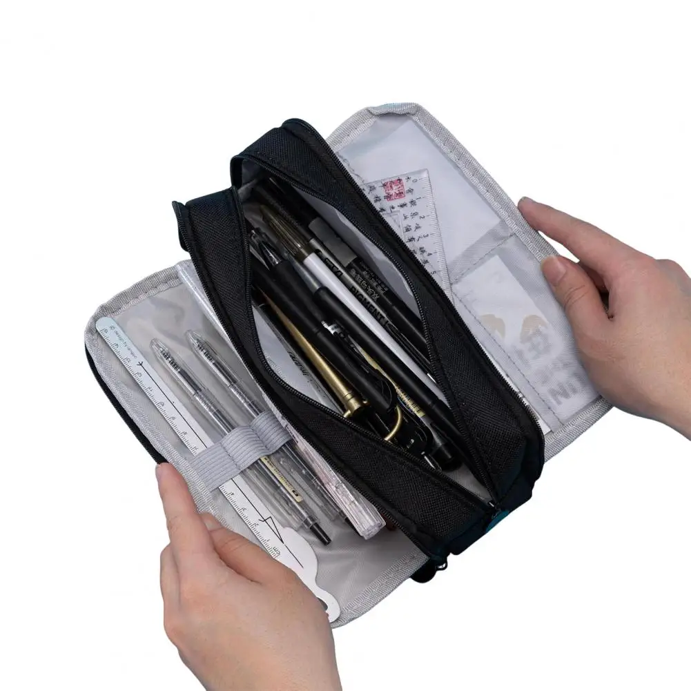 Estuche para lápices con múltiples compartimentos Estuche para lápices de lona espacioso con múltiples compartimentos Bolsa de maquillaje de gran capacidad para adultos