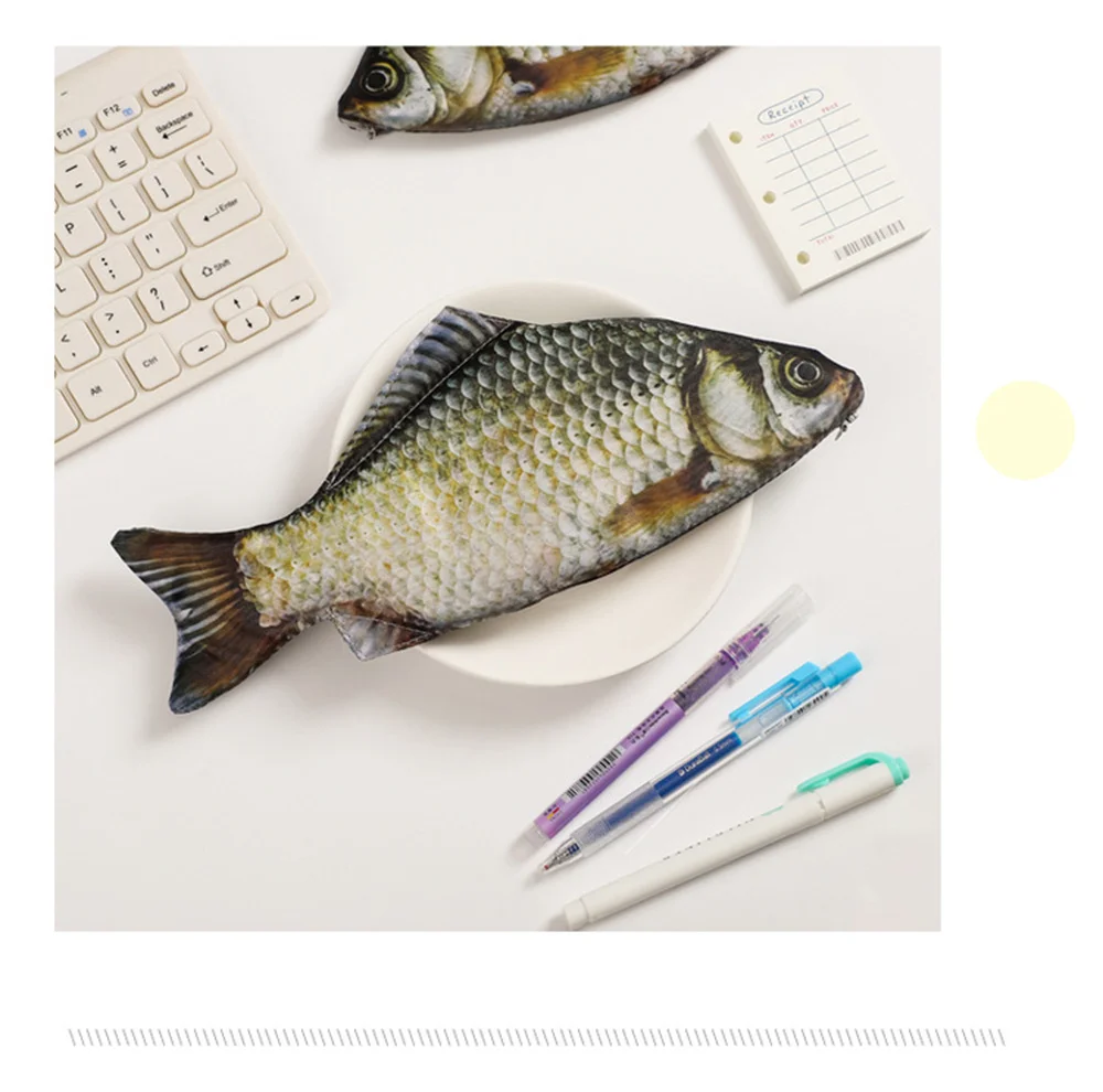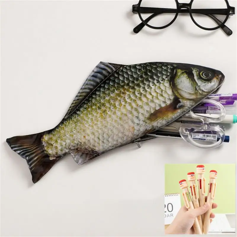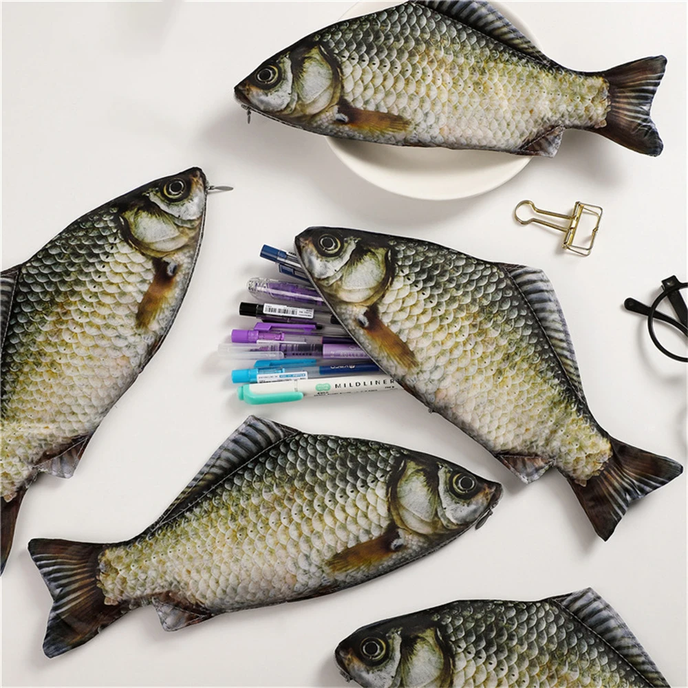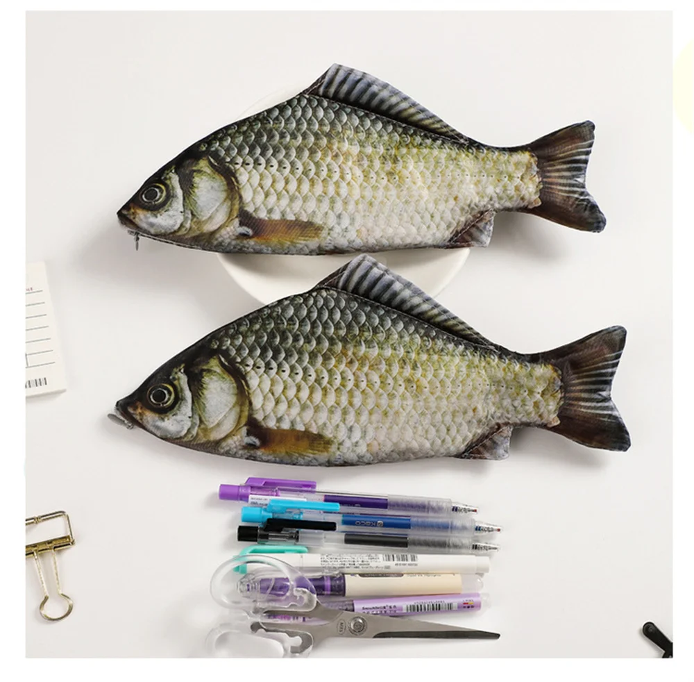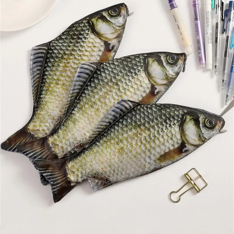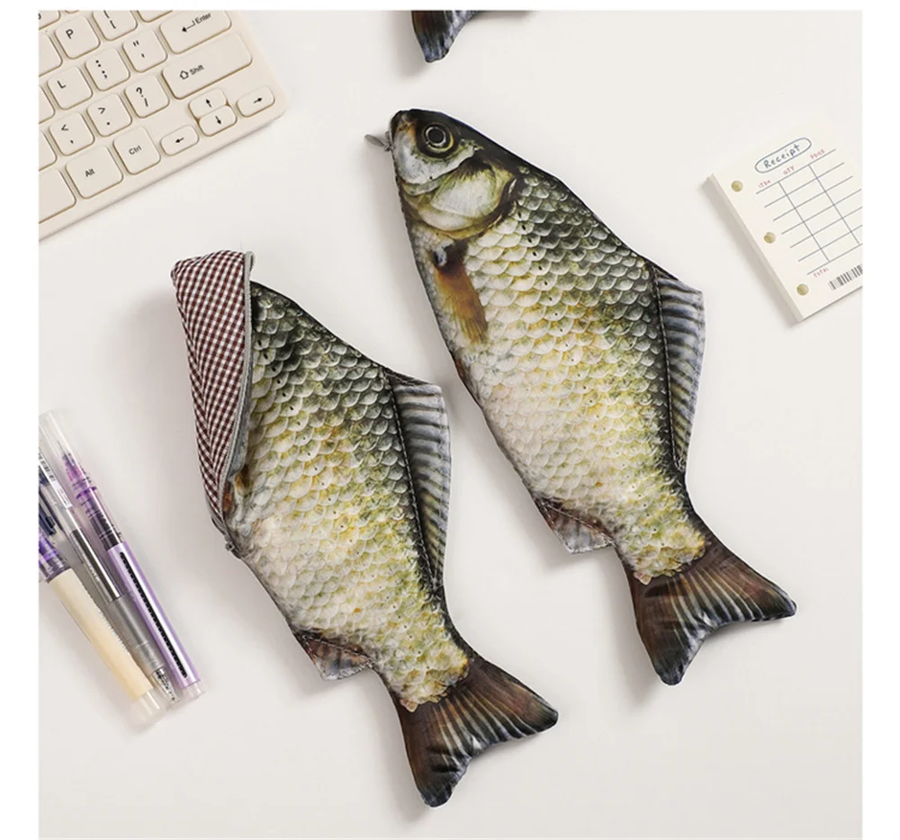 4. Diseño único: diseño peculiar e interesante, parece pescado real, pero sin olor a pescado, proporción real, diseño interesante en forma de pez proporciona un gran espacio para bolsas de almacenamiento, lápices y otros artículos.