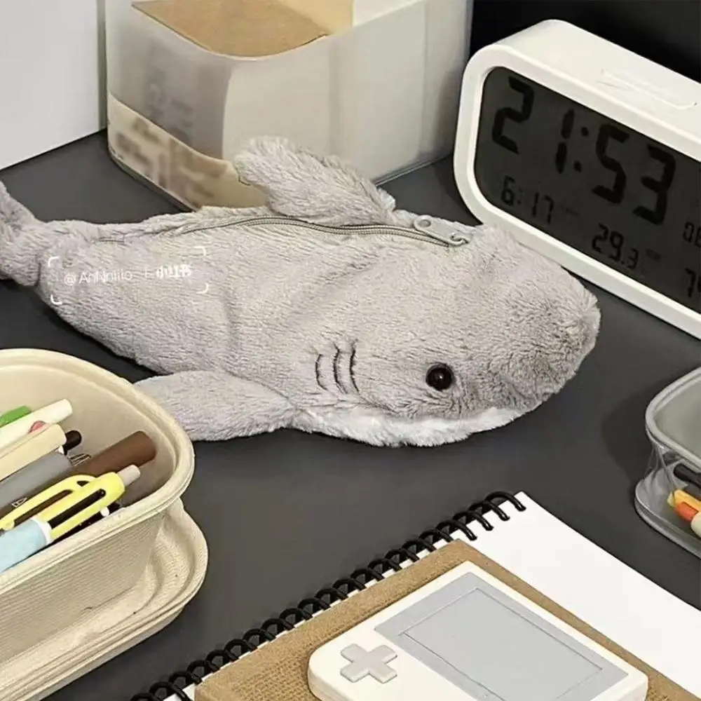 Estuche bonito de lápices de tiburón de felpa, papelería para estudiantes, suministros escolares Ka-iones, bolsa de almacenamiento para regreso a la escuela, bolsa para bolígrafos, papelería