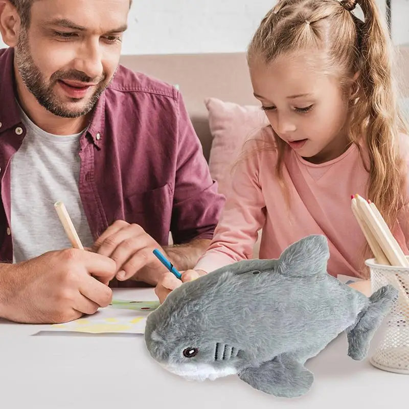 Estuche bonito de lápices de tiburón de felpa, papelería para estudiantes, suministros escolares Ka-iones, bolsa de almacenamiento para regreso a la escuela, bolsa para bolígrafos, papelería