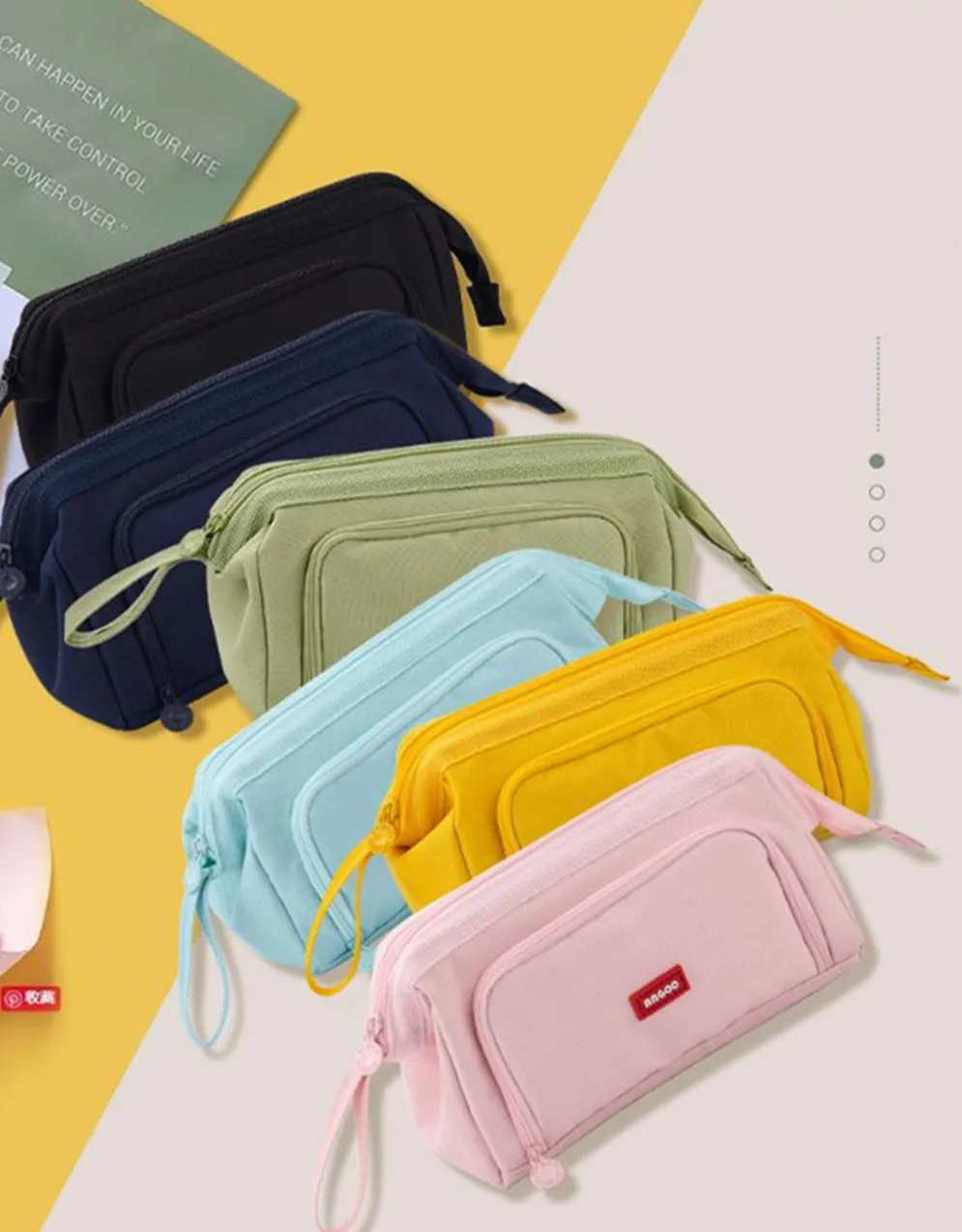 1. Diseño único: abre el estuche de lápices desde la parte superior o la solapa frontal con bisagra (ranuras en la solapa pueden unir y las 5 bolígrafos de uso frecuente); un ASA adicional en el lateral facilita el transporte del estuche.