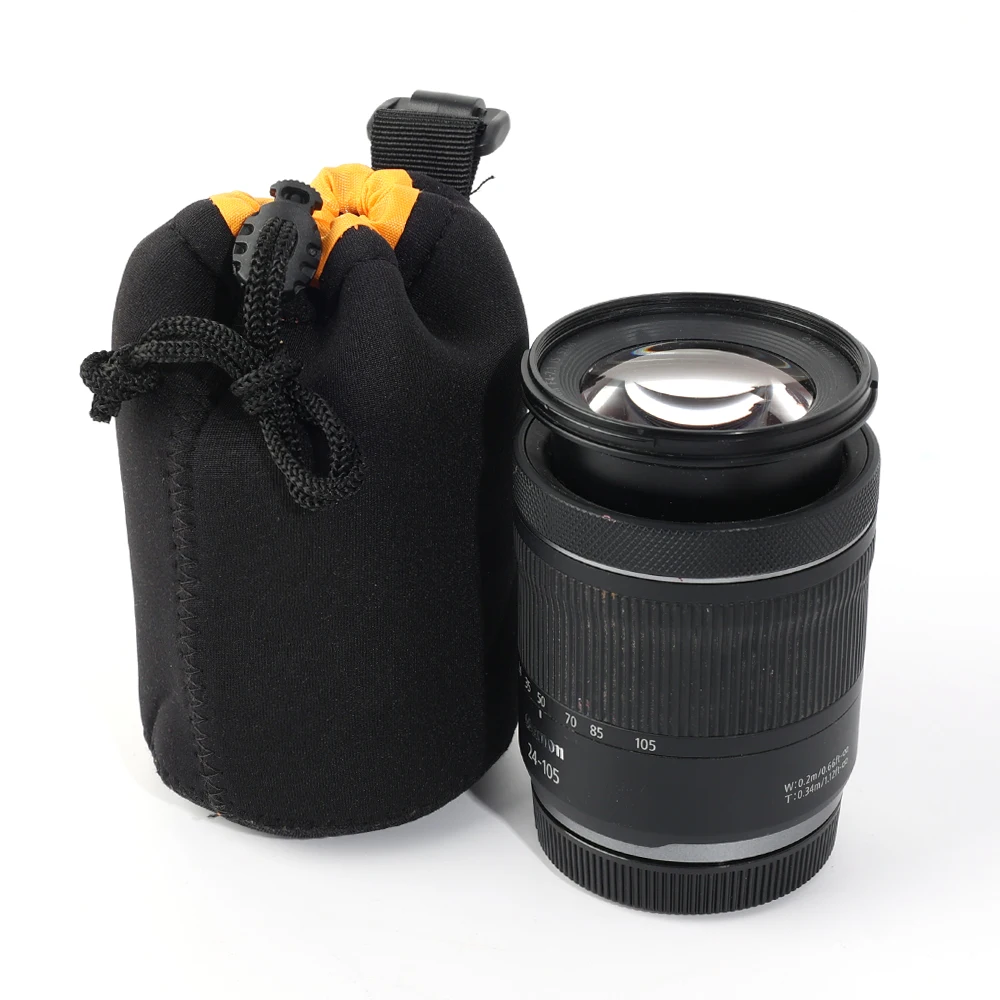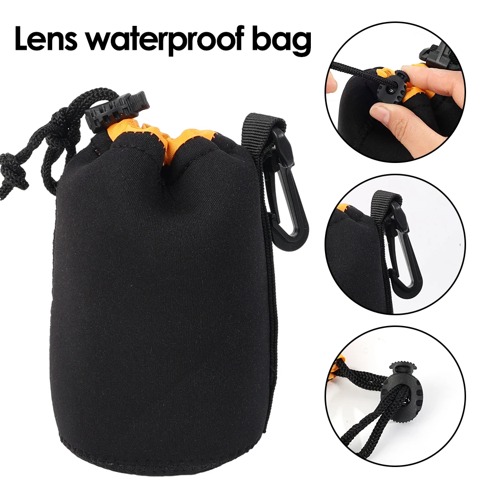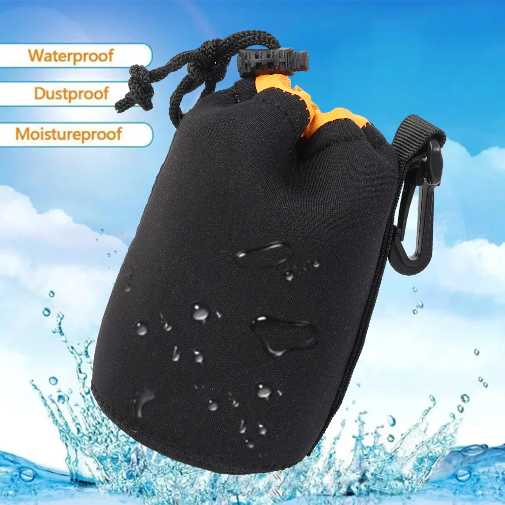 Bolsa impermeable de neopreno suave para lentes de cámara, bolsa de lana, funda protectora con cordón