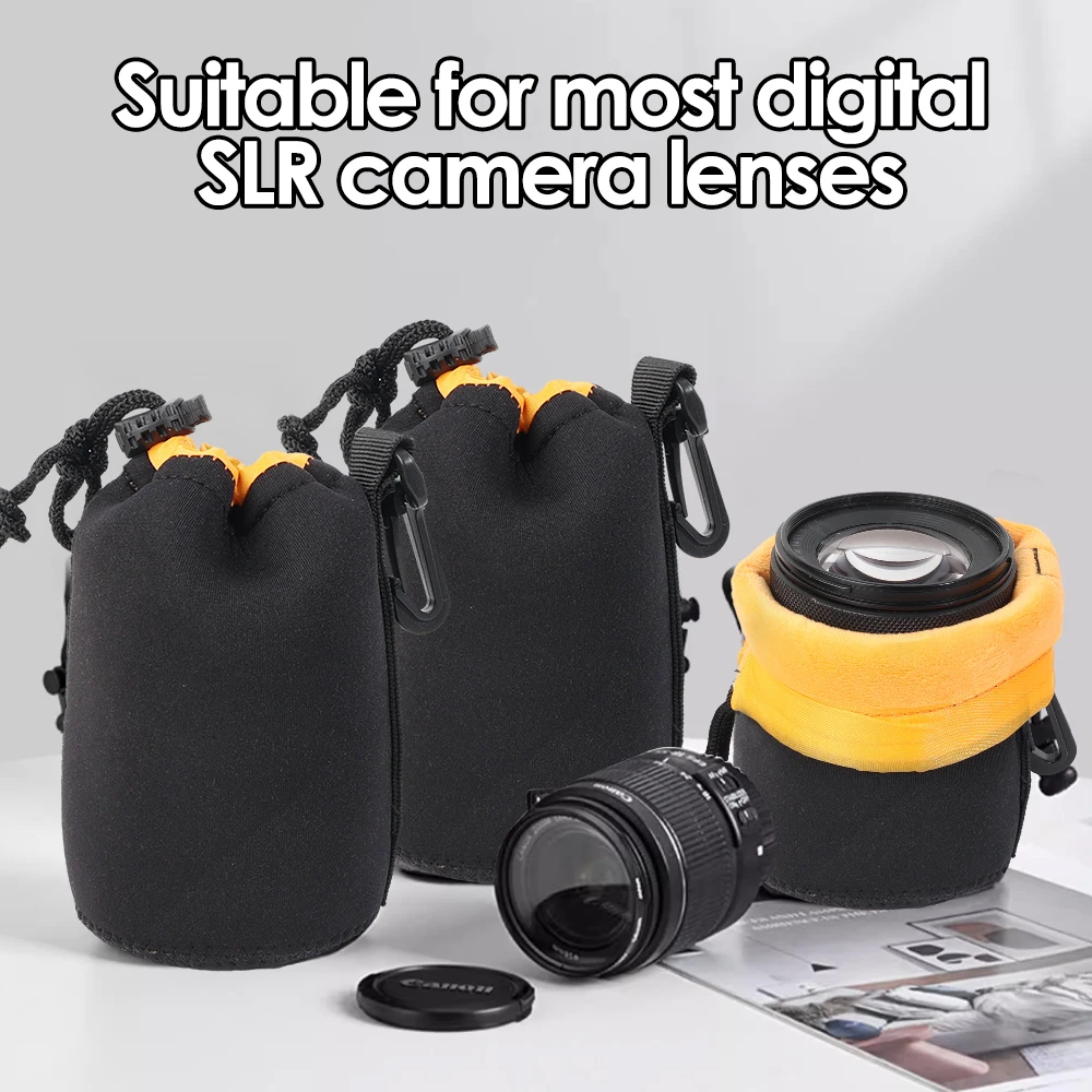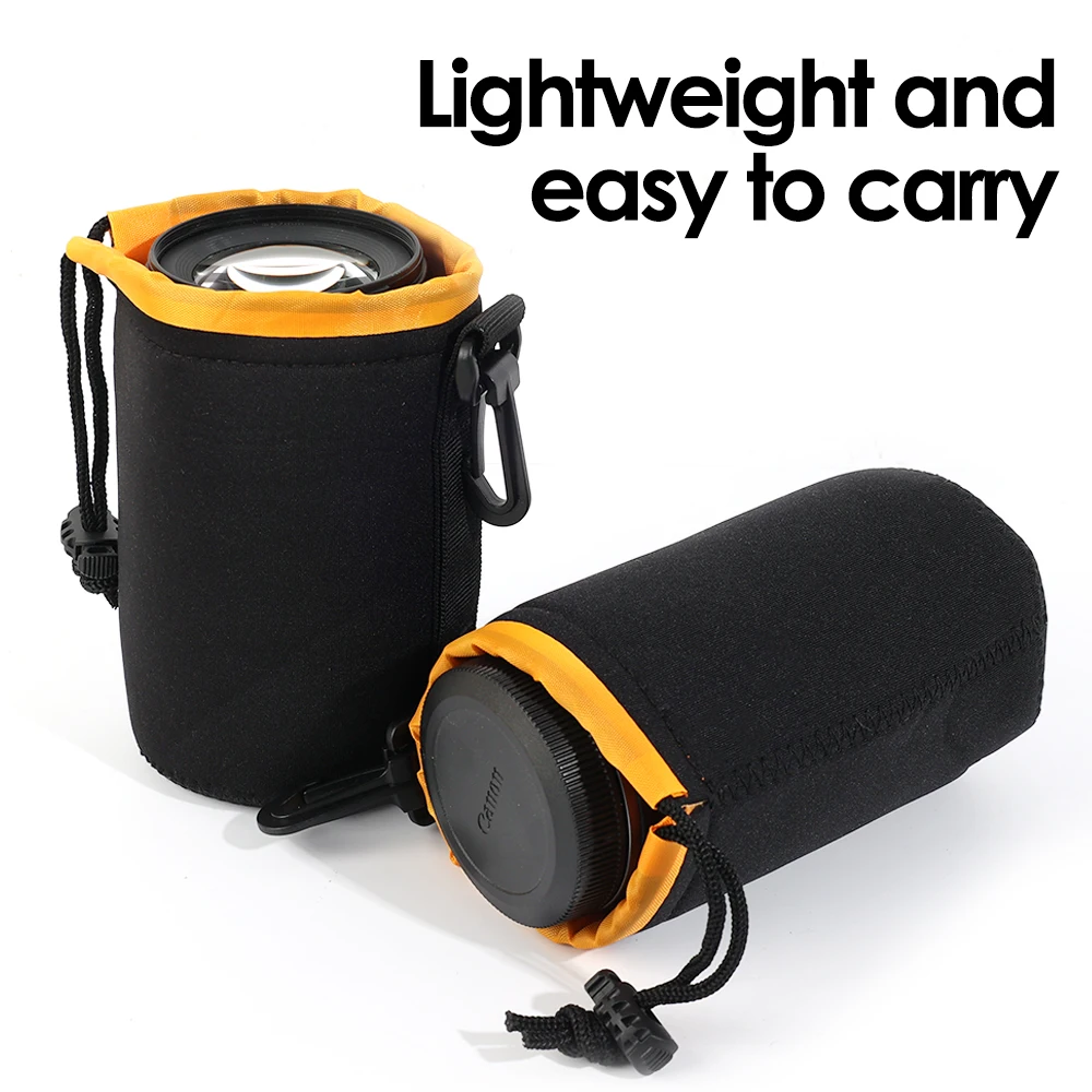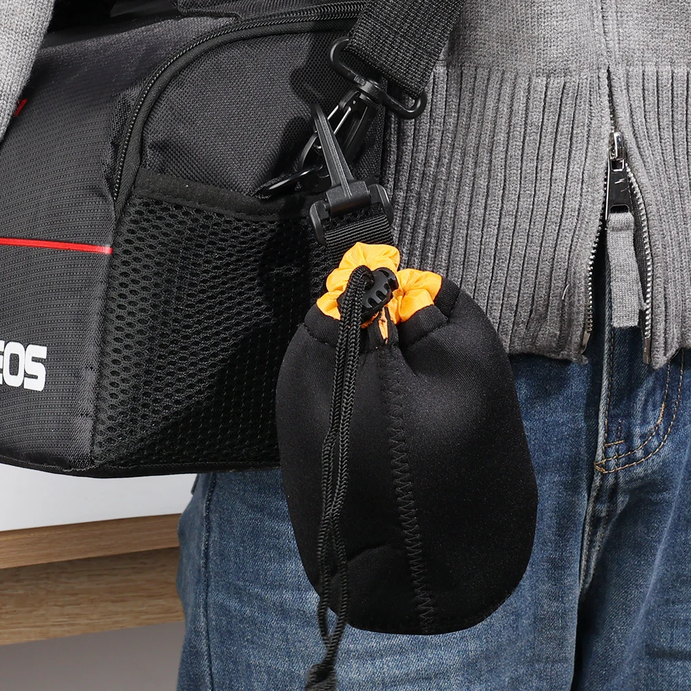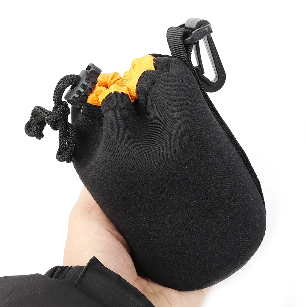 Bolsa impermeable de neopreno suave para lentes de cámara, bolsa de lana, funda protectora con cordón
