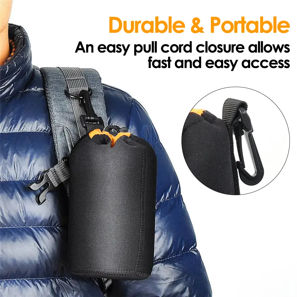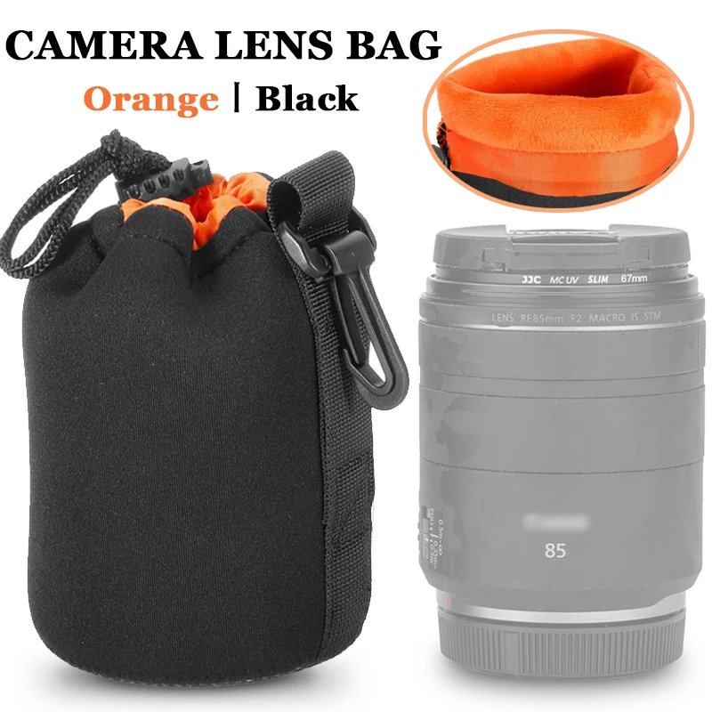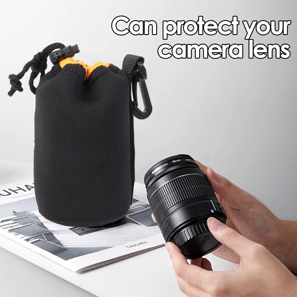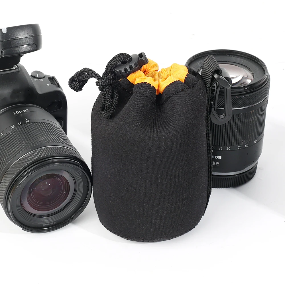 Bolsa impermeable de neopreno suave para lentes de cámara, bolsa de lana, funda protectora con cordón