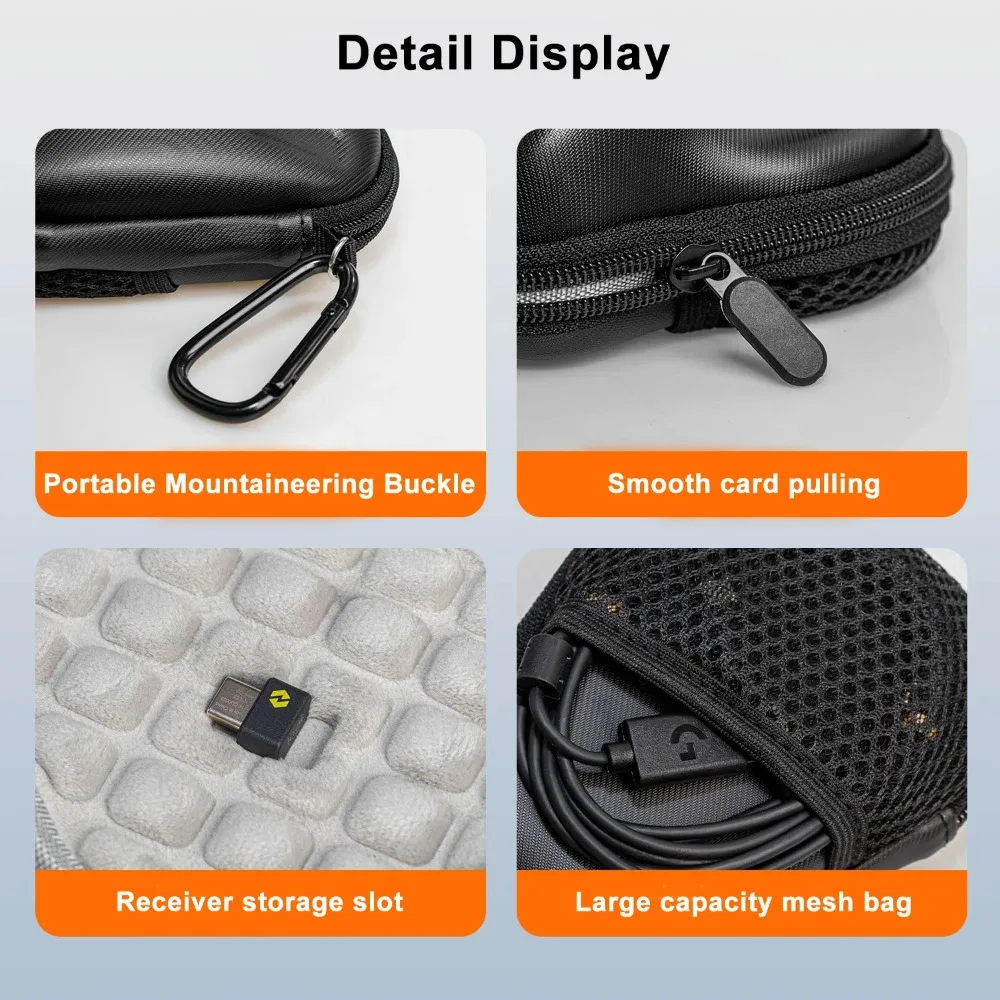 Incluye una ranura dedicada para almacenar de forma segura el receptor USB.La cremallera de deslizamiento suave garantiza un fácil acceso y proporciona una solución de almacenamiento ordenada y organizada.