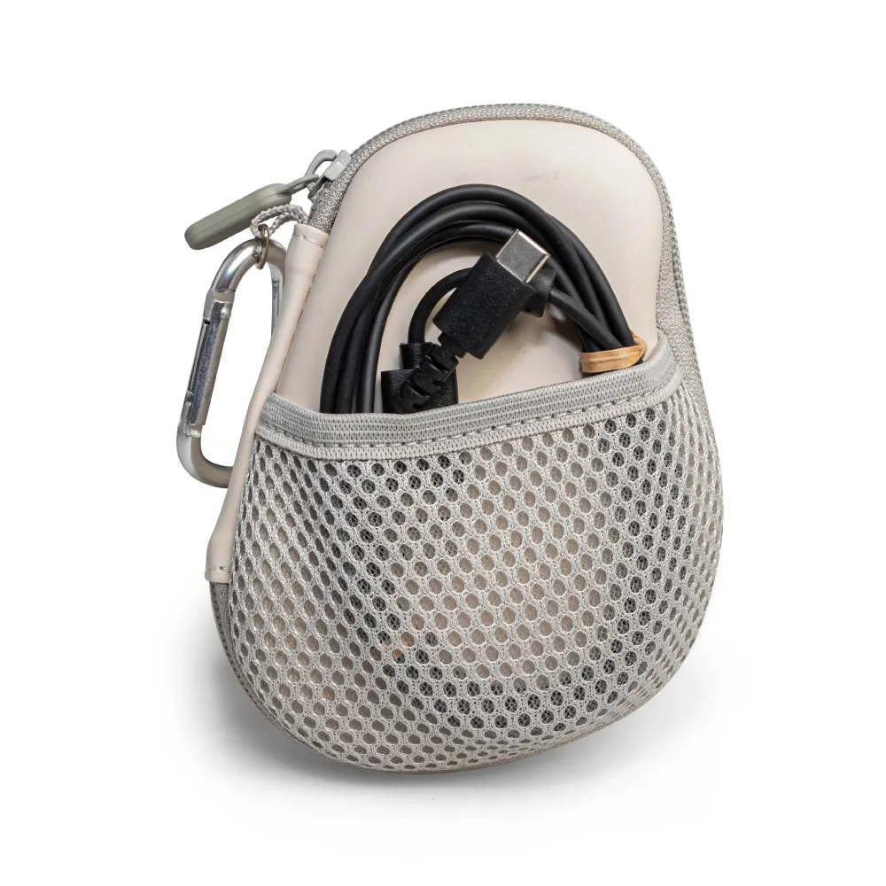 Equipado con un práctico mosquetón para facilitar su transporte.El bolsillo externo de malla ofrece almacenamiento adicional para cables o adaptadores, lo que mejora la preparación para viajar.