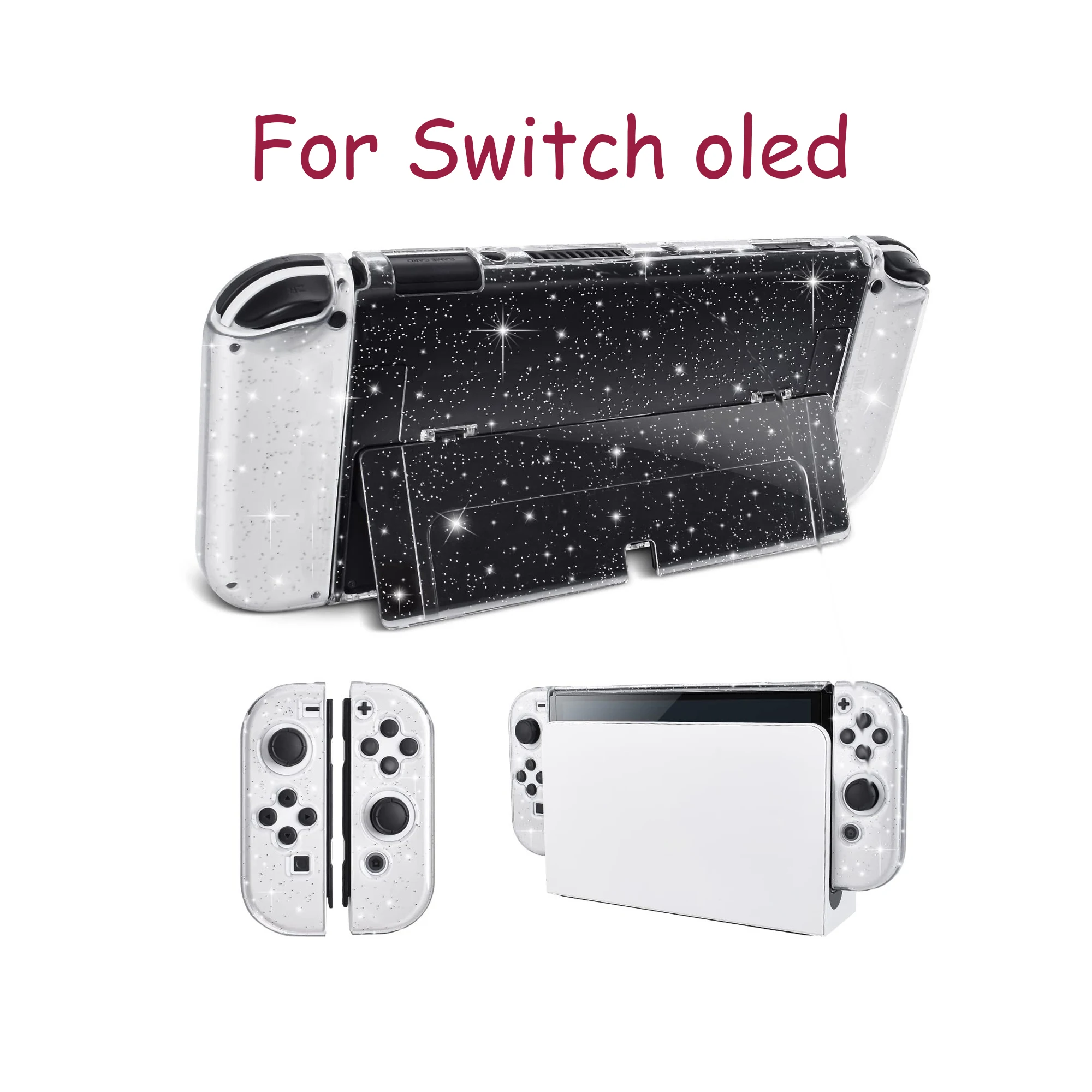 Comprar Estuche rígido transparente con purpurina para controlador Oled de interruptor, cubierta transparente de cristal, carcasa ostentosa para carcasa de soporte NS