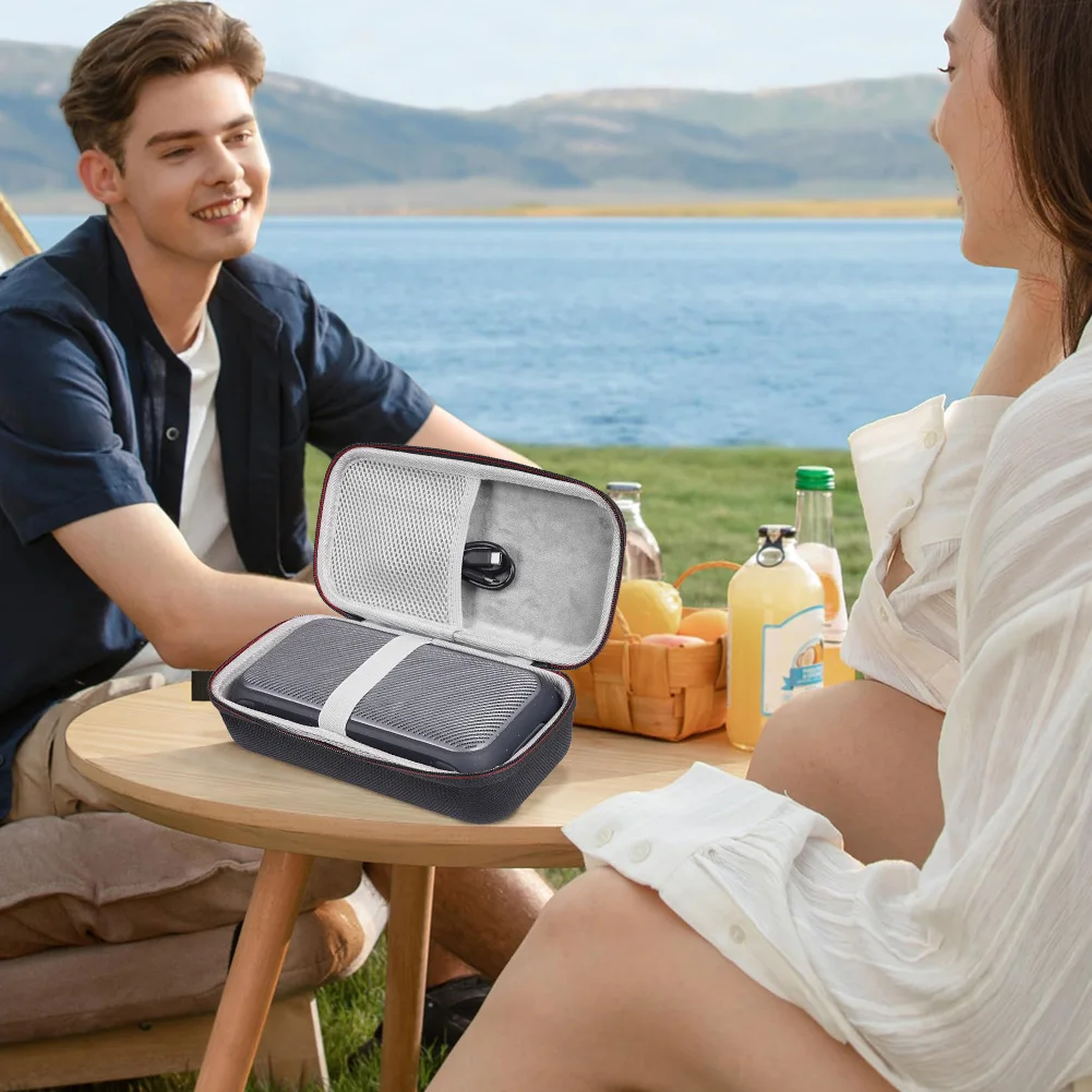 2.Protección de calidad:Nuestra bolsa de transporte está fabricada con una carcasa dura de EVA duradera para una protección excepcional contra el polvo y las salpicaduras.El interior, forrado con suave terciopelo, protege su altavoz de caídas, rayones e impactos.Una correa segura adicional mejora las medidas de protección general.
