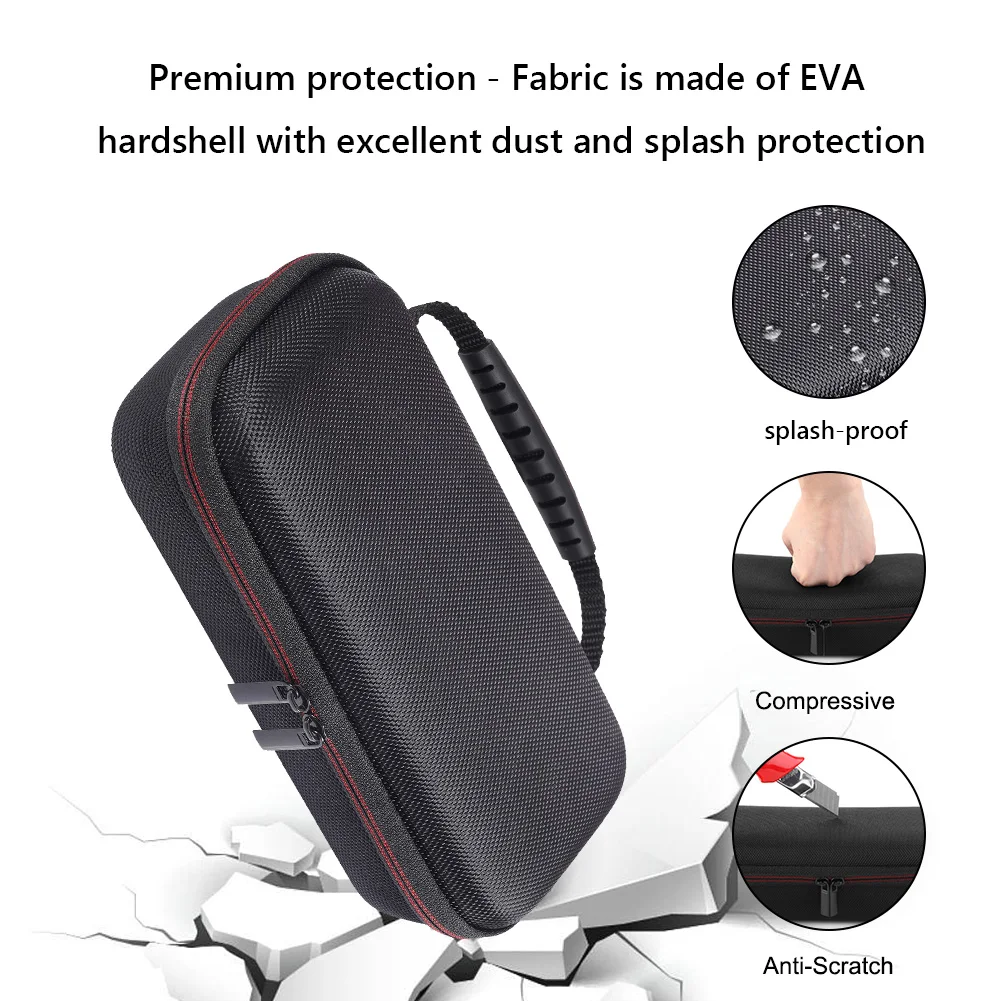 2. Protección de calidad:Nuestra bolsa de transporte está construida con una carcasa dura de EVA duradera para una protección excepcional contra el polvo y las salpicaduras. El interior, forrado con terciopelo suave, protege su altavoz de caídas, arañazos e impactos. Una correa de seguridad adicional mejora las medidas de protección generales.