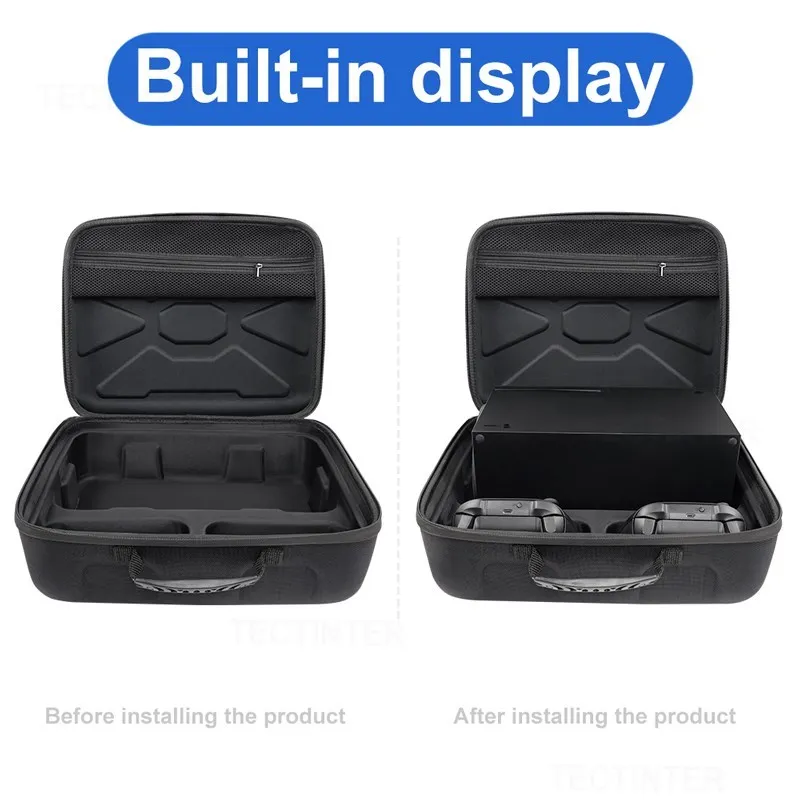 Este estuche de viaje mantendrá tu consola de juegos libre de polvo y absorberá eficazmente los impactos causados por caídas accidentales. El diseño de cuerda elástica de los controladores fijos mantiene estable la caja interior. Protege su dispositivo todo el tiempo, incluso si el viaje es accidentado.