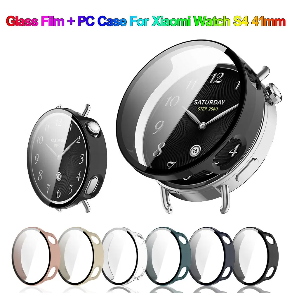 Funda dura + vidrio para Xiaomi Watch S4 41mm Protector de pantalla cubierta protectora de parachoques de vidrio templado accesorios de carcasa protectora