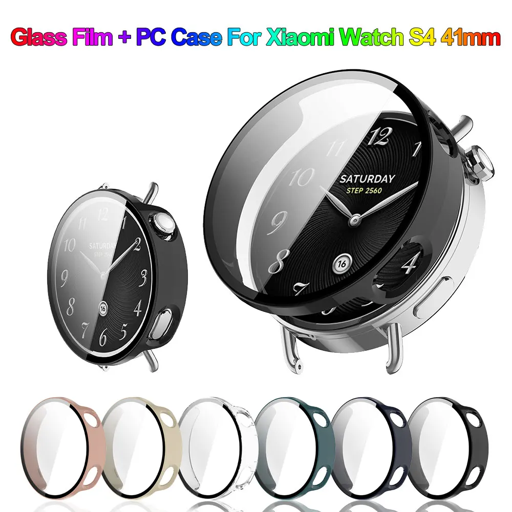Funda dura + vidrio para Xiaomi Watch S4 41mm Protector de pantalla cubierta protectora de parachoques de vidrio templado accesorios de carcasa protectora