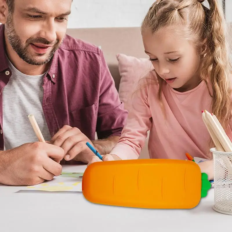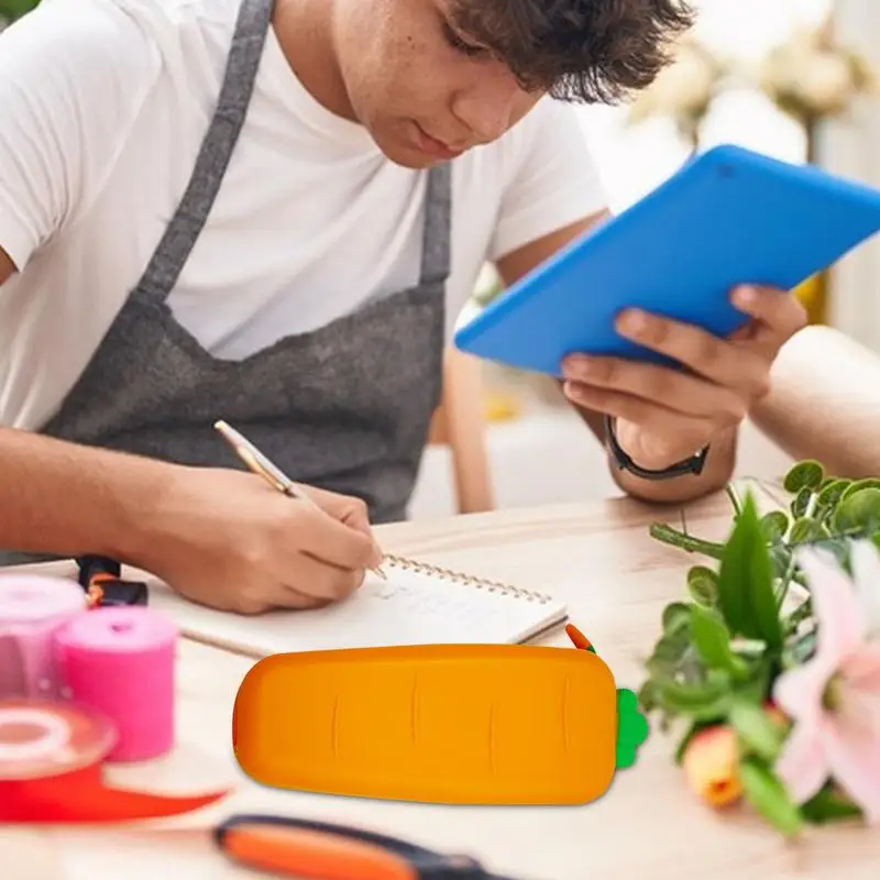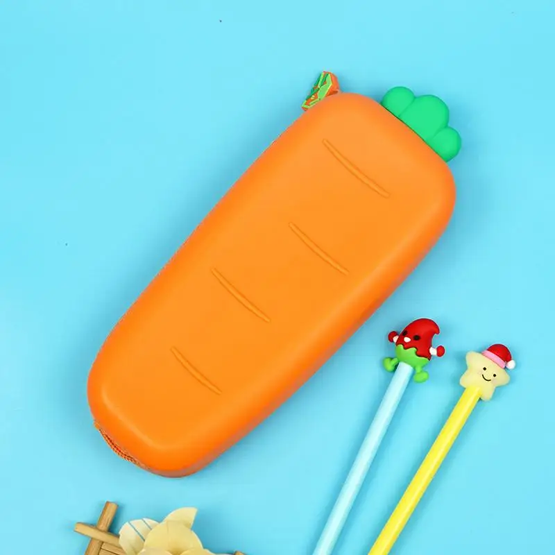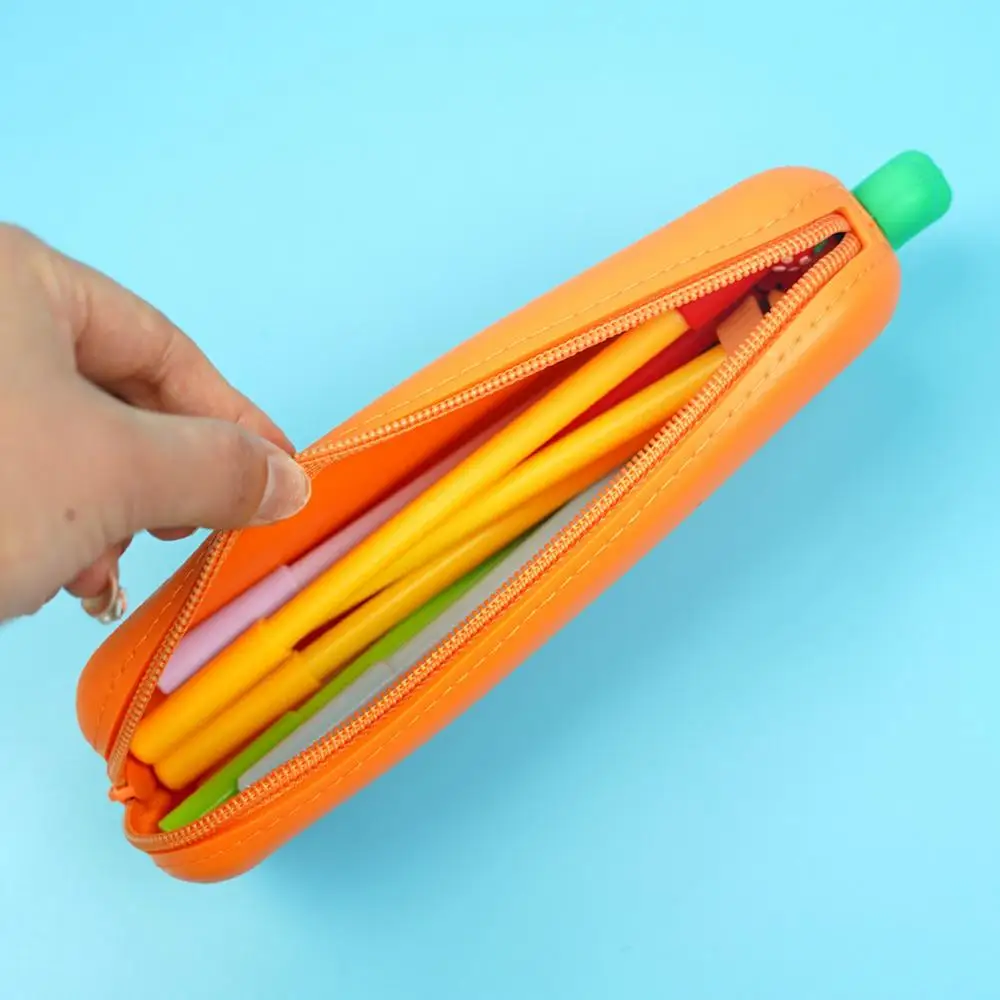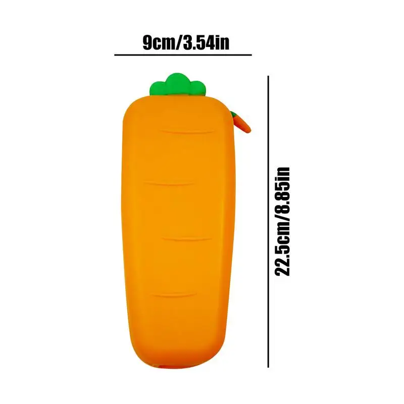 1. Material inodoro: Esta bolsa de lápiz de zanahoria de Silicona proporciona una solución de almacenamiento resistente y confiable para sus necesidades de papelería. Con su diseño de cremallera de alta densidad, garantiza un fácil acceso y un cierre seguro, lo que lo hace perfecto para la escuela, los negocios o los viajes.