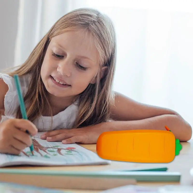2. Diseño de zanahoria juguetón: mantenga sus bolígrafos y lápices organizados en esta bonita bolsa de lápices con forma de zanahoria. Su diseño único seguro que llamará la atención. Mantenga sus bolígrafos y lápices organizados con estilo.