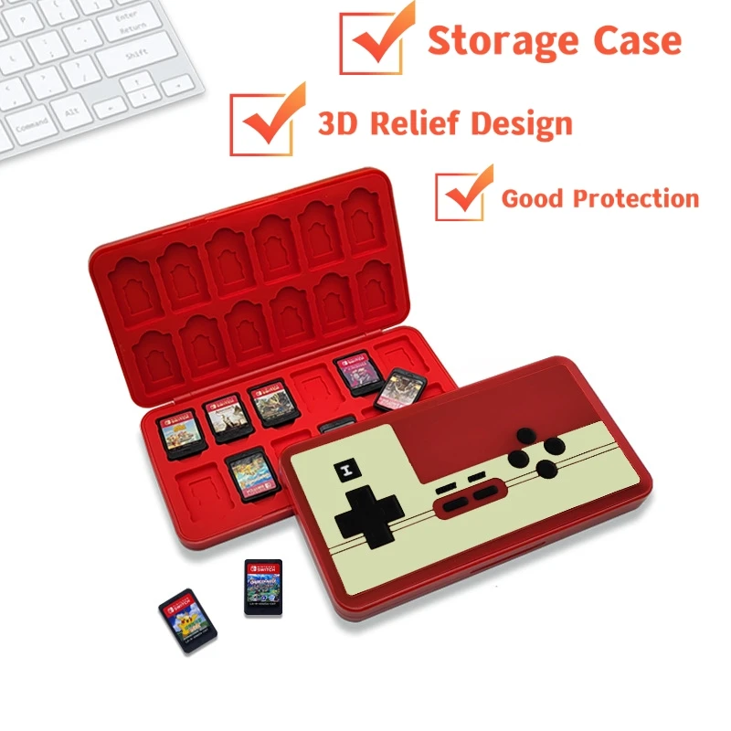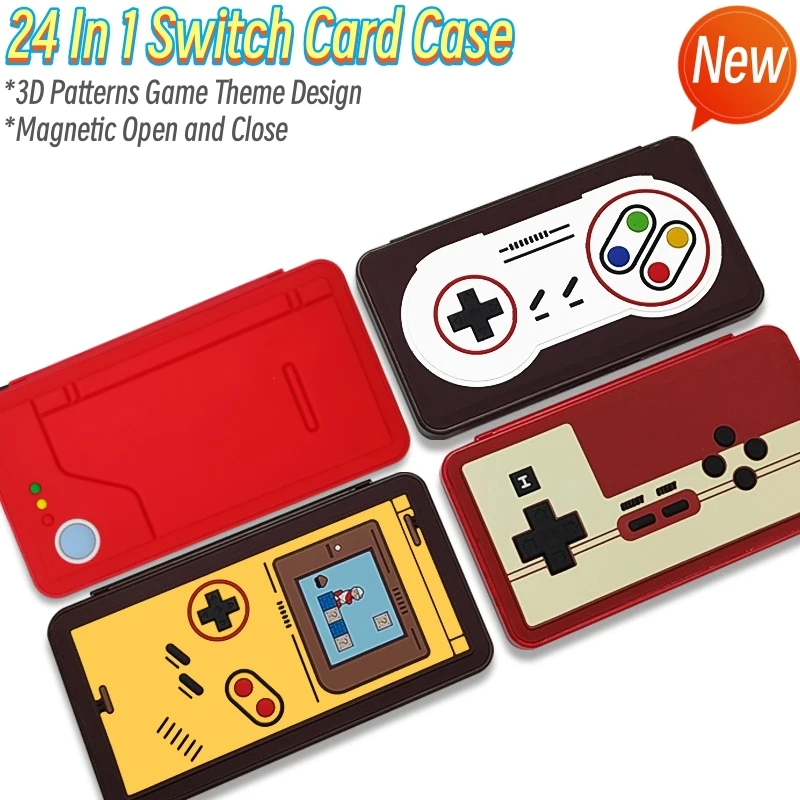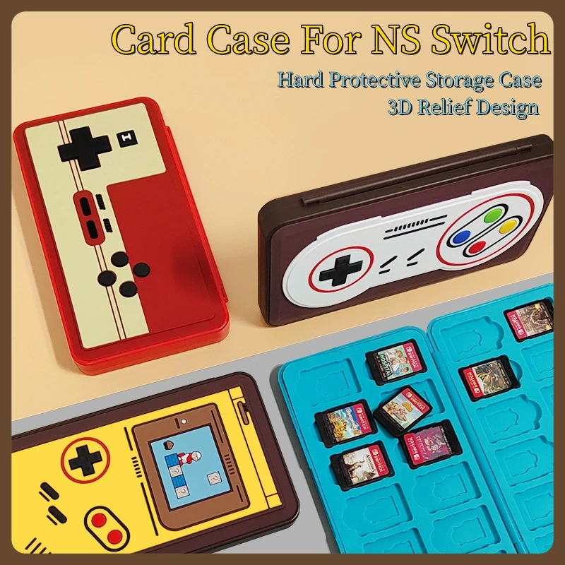 Comprar Estuche para tarjeta de juego NS Switch de diseño Retro, estuche de almacenamiento de imagen 3D, 24 ranuras para tarjetas, caja de tarjeta de juego OLED, accesorios de cartucho
