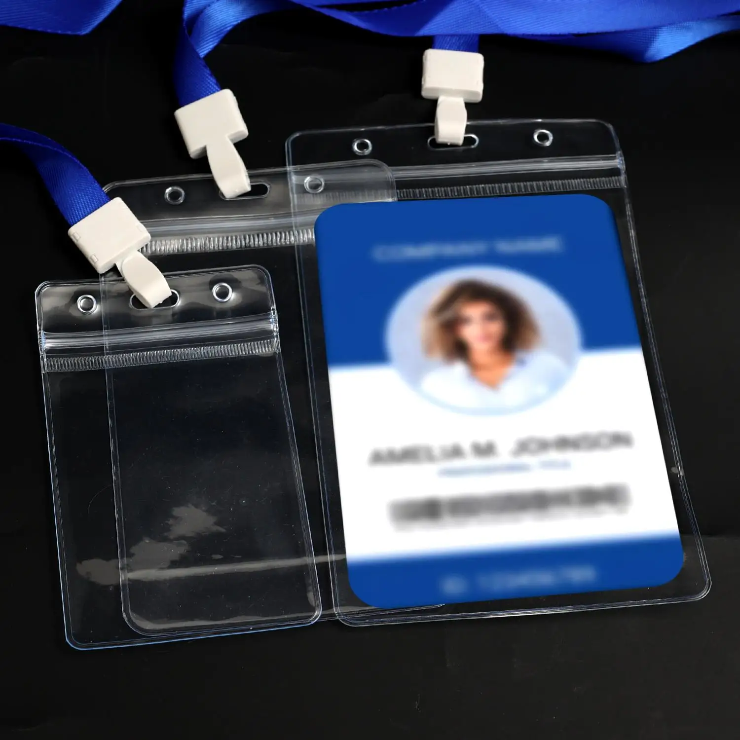 Estuche transparente para permiso de trabajo, juego de cordón para trabajadores de personal, soporte para insignia, etiqueta de nombre de identificación de exposición, tarjetero, cubiertas para tarjetas de paso
