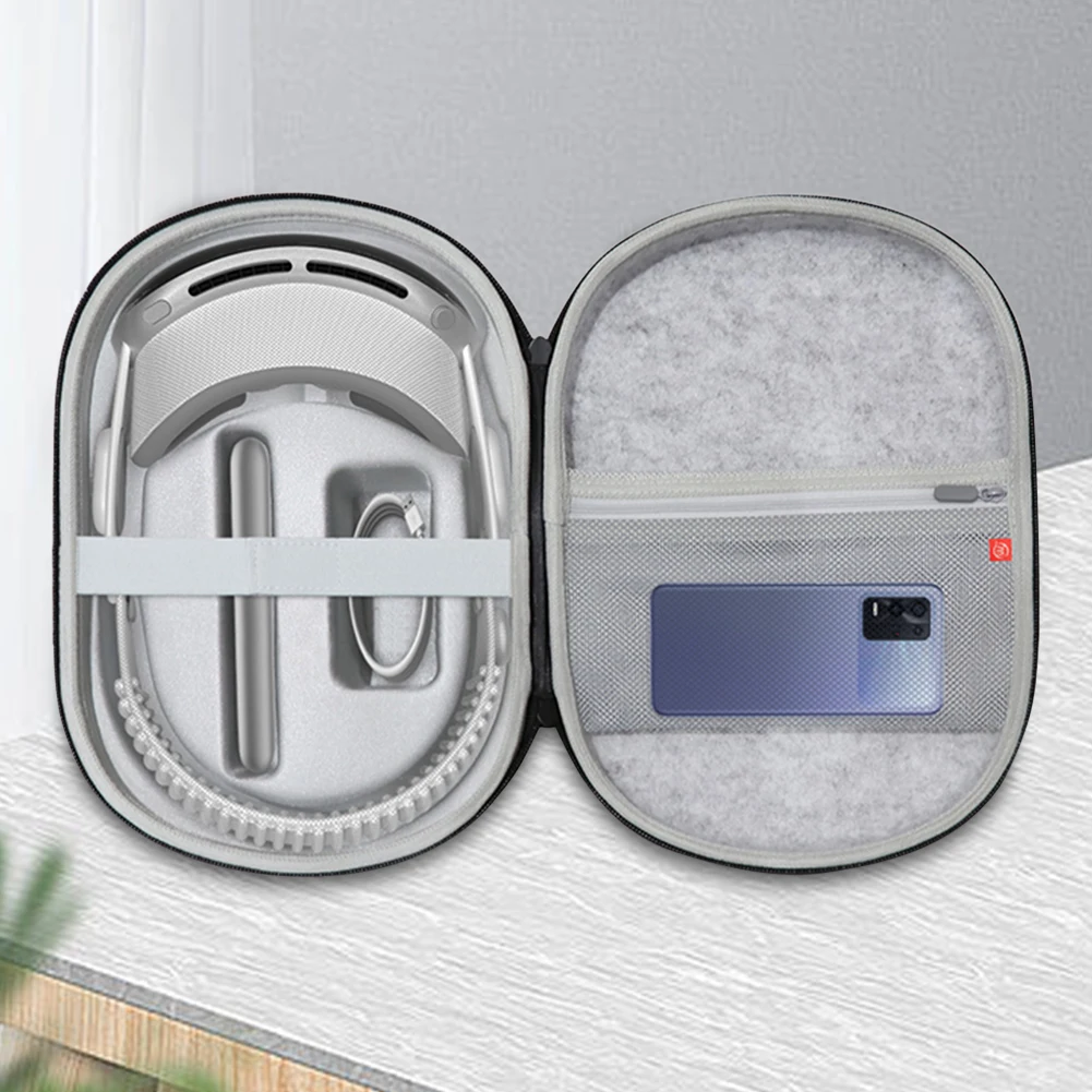 Estuche de transporte a prueba de golpes Estuche protector completo Anti-arañazos Bolso de viaje portátil con bolsillo de malla para Apple Vision Pro Case