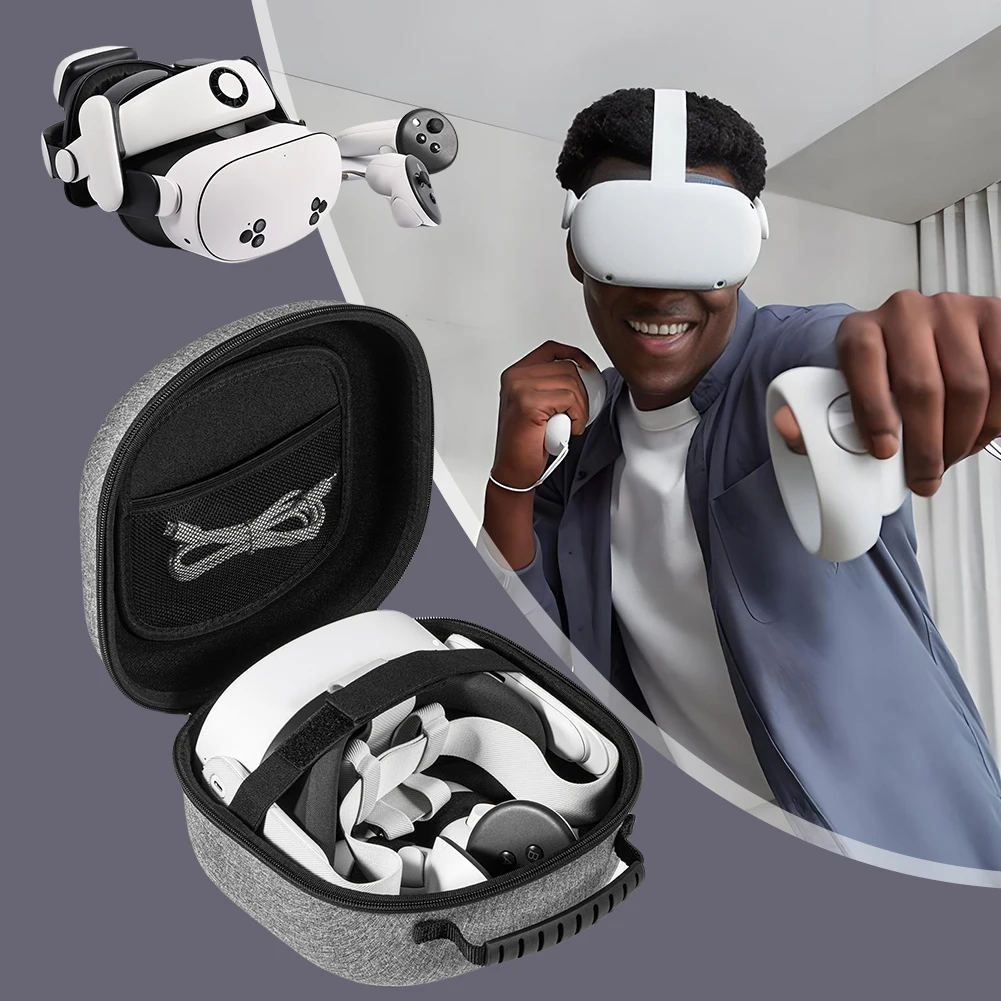 Compatible conAuriculares Meta Quest 3S VR.Su ajuste personalizado garantiza que su dispositivo esté almacenado de forma segura, lo que la convierte en la bolsa de almacenamiento para auriculares VR ideal para viajes o uso doméstico.