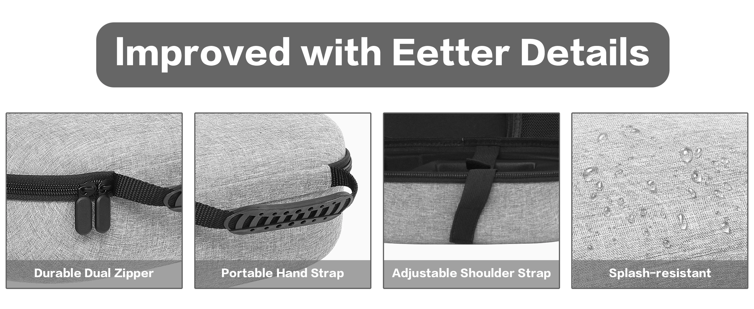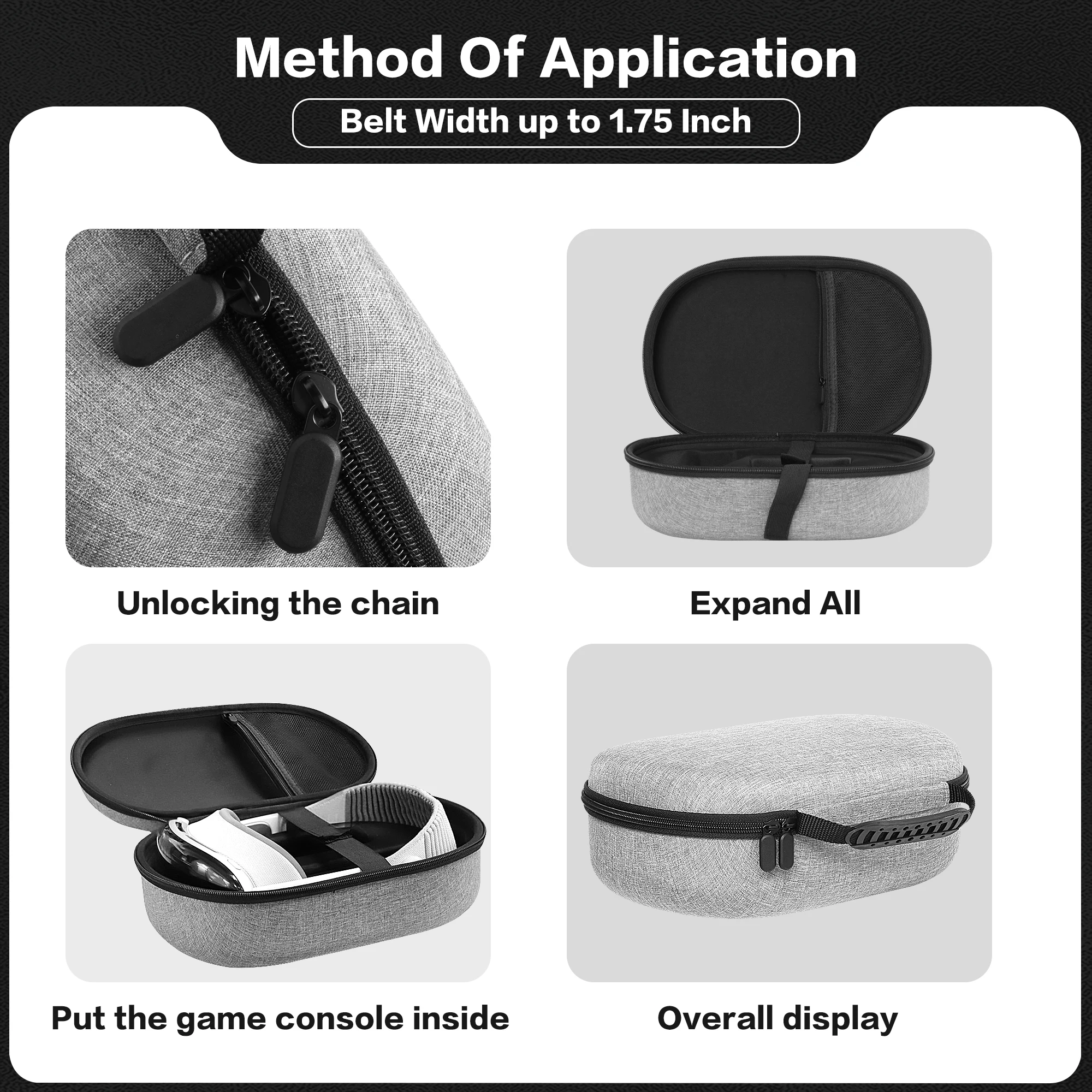 Excelente mano de obra: el diseño de doble cremallera de la funda proporciona un fácil acceso a su realidad virtual y accesorios. La correa elástica ajustable especializada fija de forma segura los auriculares VR en su lugar, y una cómoda correa de mano resistente hace que sea fácil de llevar.