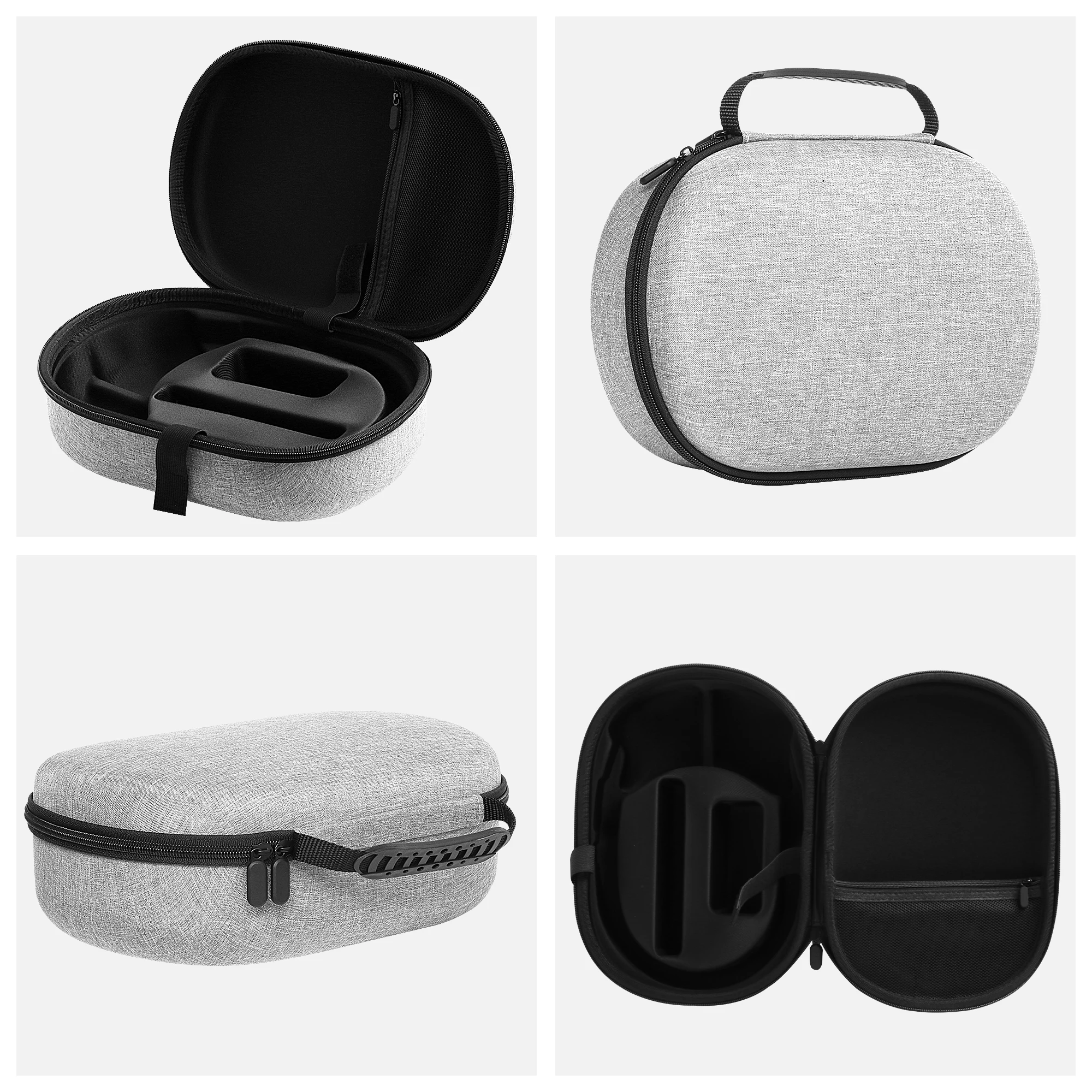 Excelente mano de obra: el diseño de doble cremallera de la funda proporciona un fácil acceso a su realidad virtual y accesorios. La correa elástica ajustable especializada fija de forma segura los auriculares VR en su lugar, y una cómoda correa de mano resistente hace que sea fácil de llevar.