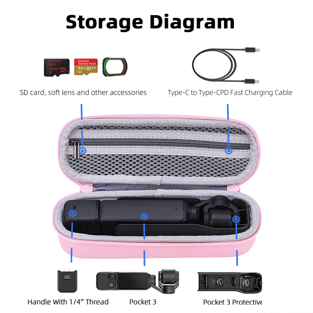5.Ajuste personalizado para dispositivos:Diseñada con un diseño de molde preciso, esta bolsa de transporte fácilmentecompatible conDJI OSMO POCKET 3 y sus accesorios, manteniendo su equipo perfectamente organizado y seguro, ya sea en casa o mientras viaja.