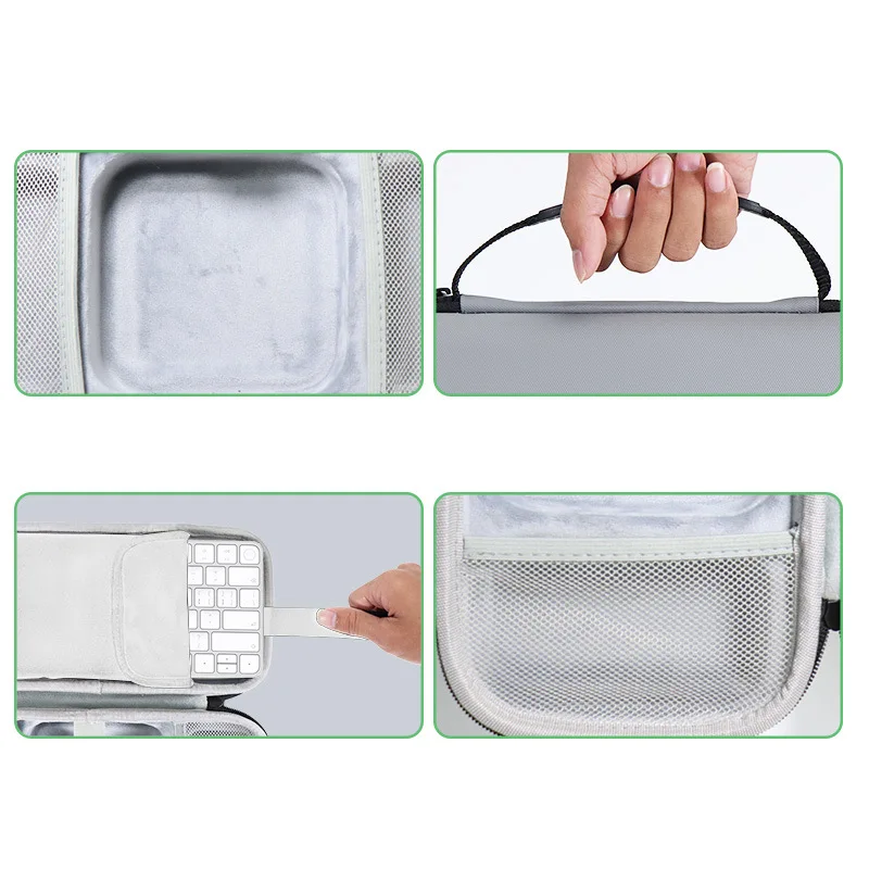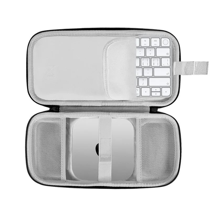 Este estuche portátil es compatible con Mac Mini M4 Pro/M4 2024.La bolsa de gran capacidad puede acomodar mini PC, teclado mágico, mouse, cables, etc.