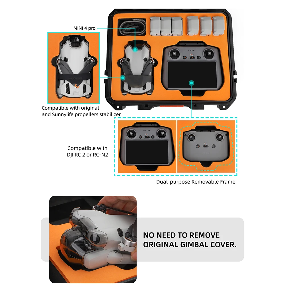 Comprar Estuche de transporte de carcasa dura portátil para todo tipo de clima, impermeable, Compatible con DJI Mini 4 Pro, accesorios para drones, 35,4x29,4x13,7 cm