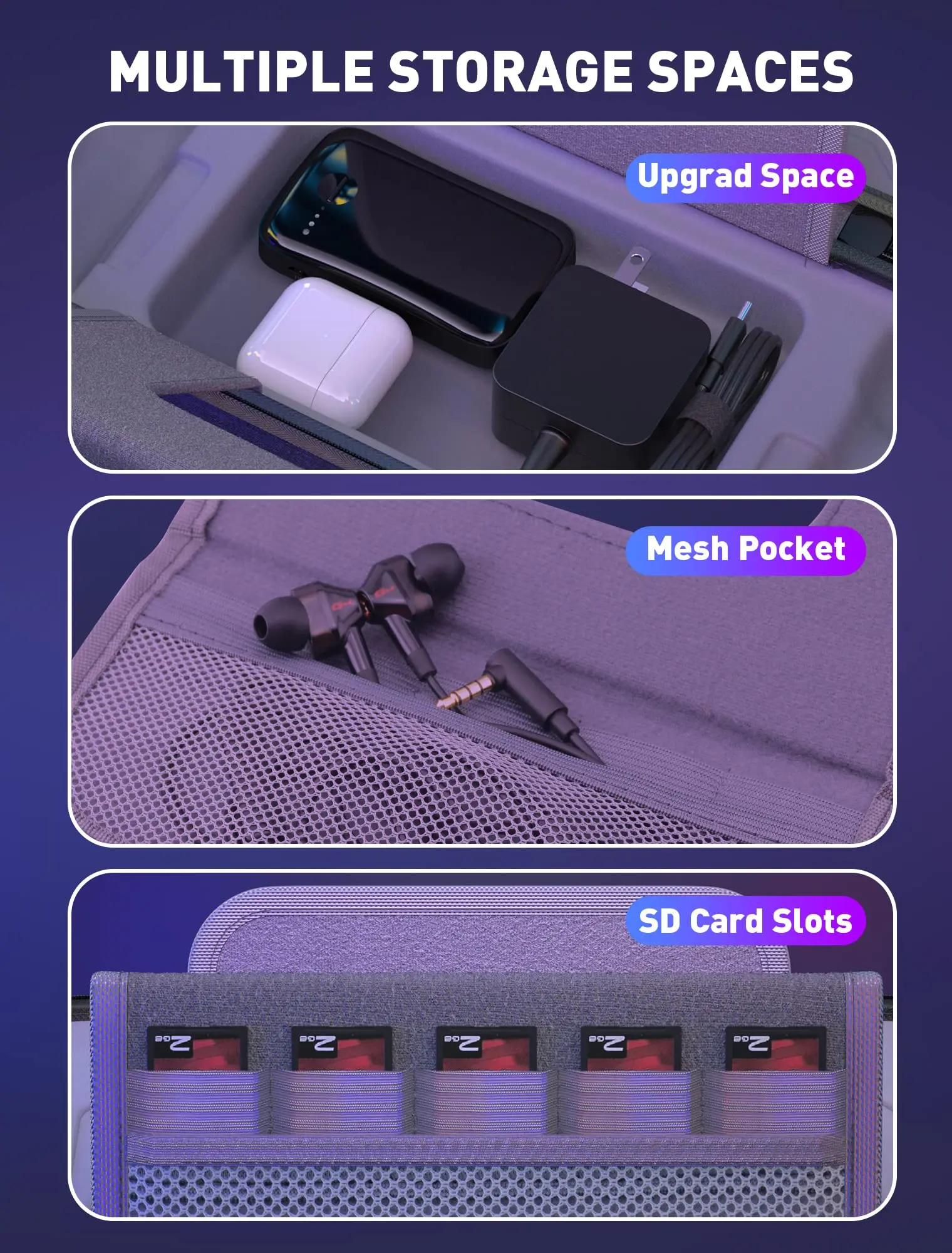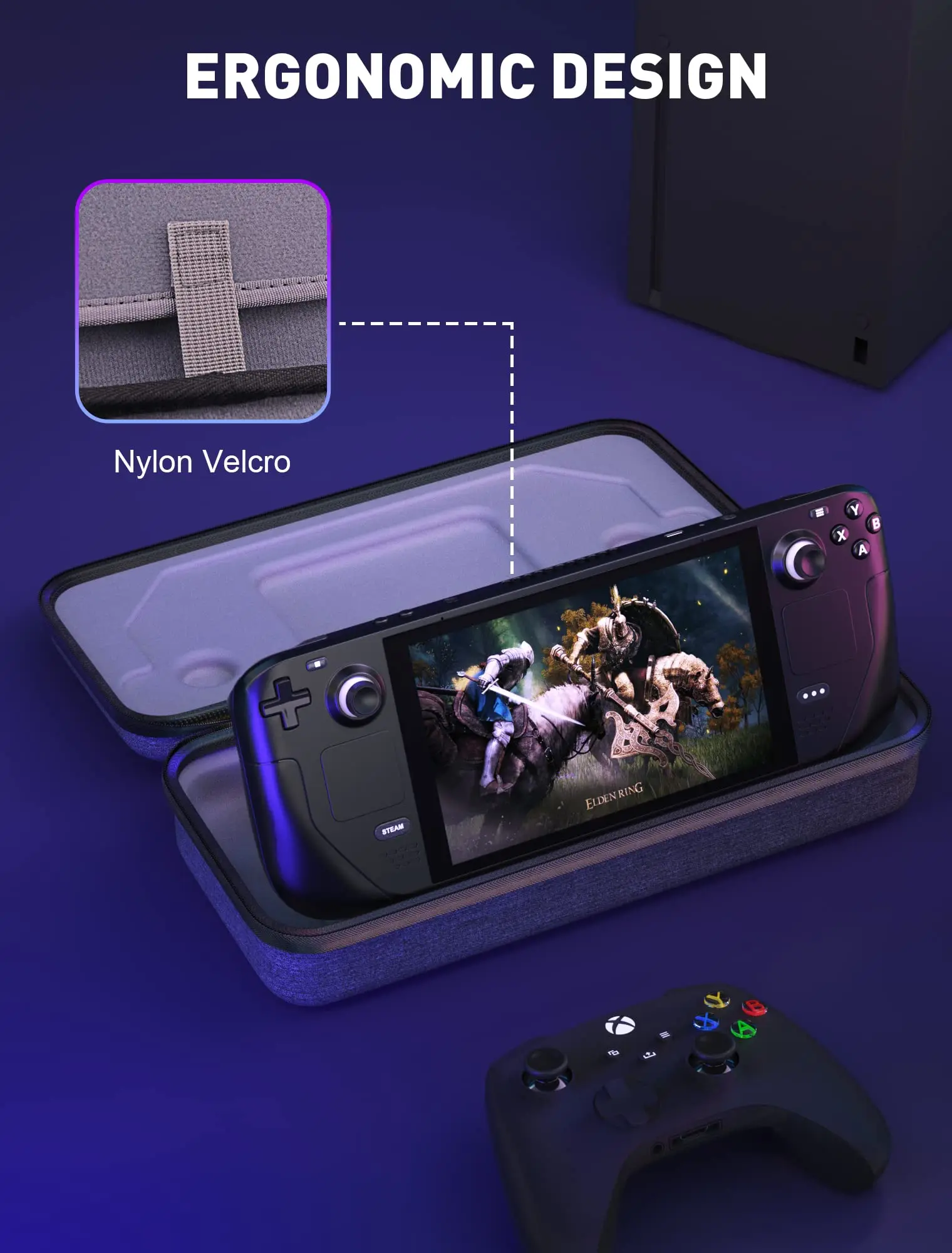 1.Estuche de almacenamiento Steam Deck: diseñado para adaptador de cargador de CA Steam Deck y Steam Deck, banco de energía, tarjeta mini SD, mouse inalámbrico y otros accesorios.