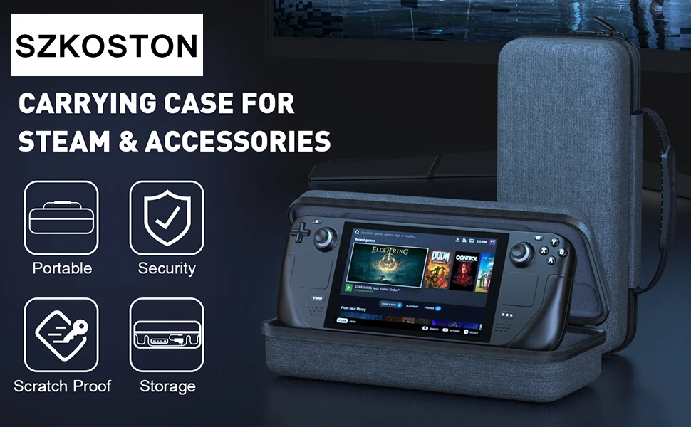 4.Bolsa de almacenamiento Steam Deck para el hogar y los viajes: excelente estuche Steam Deck para almacenamiento en el hogar, viajes, muy liviano y fácil de transportar.Cuando no esté en uso, puede guardar la consola Steam Deck y otros accesorios Steam Deck de forma segura.Szkoston