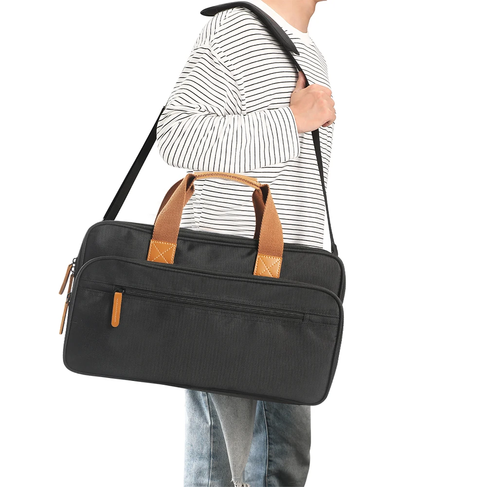 2.Almacenamiento versátil:Lo mejor para guardar los controladores de DJ, esta bolsa también viene con un compartimento acolchado y múltiples capas de cremalleras.Proporciona espacios de protección separados para accesorios como micrófonos, cables de alimentación, cables de audio, auriculares e incluso una computadora portátil de 14 pulgadas.
