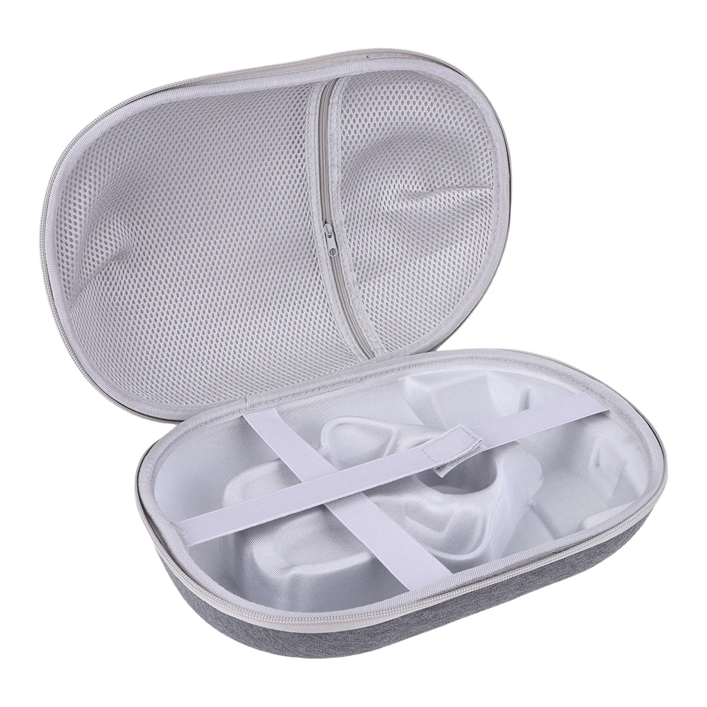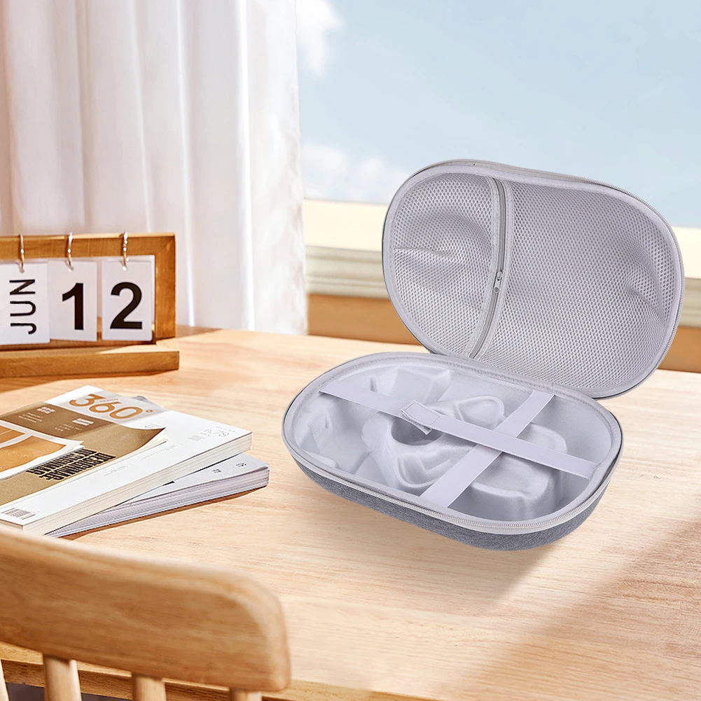 B El interior de esta bolsa de almacenamiento de viaje cuenta con ranuras divididas y gruesas con correas de seguridad para separar los auriculares VR de los controladores, evitando la fricción y el movimiento. Un bolsillo adicional de malla con cremallera es perfecto para almacenar pequeños accesorios como cargadores y cables, manteniendo su equipo VR estable durante el tránsito.